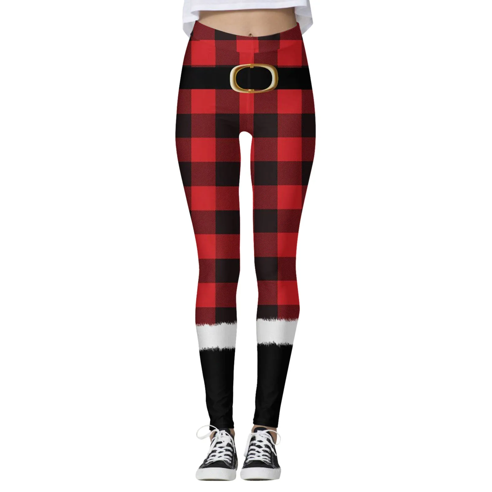 Christmas Leggings Womens Workout Out Leggings Snowflake Print Color Block Pants Stretchy Leggings Pants Ladies Xmas Trousers
