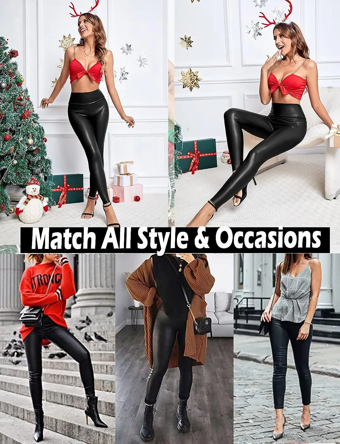 Women's Faux Leather Leggings Invisible Open Crotch Pants PU Elastic Shaping Hip Push Up Black Sexy Stretchy High Waisted Tights