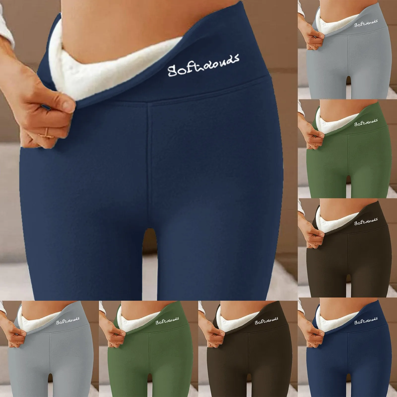 Womens Winter Casual Solid Warm Leggings For Women plus Size Summer for Leggings Elastic High Waist Thermal Capris Workout