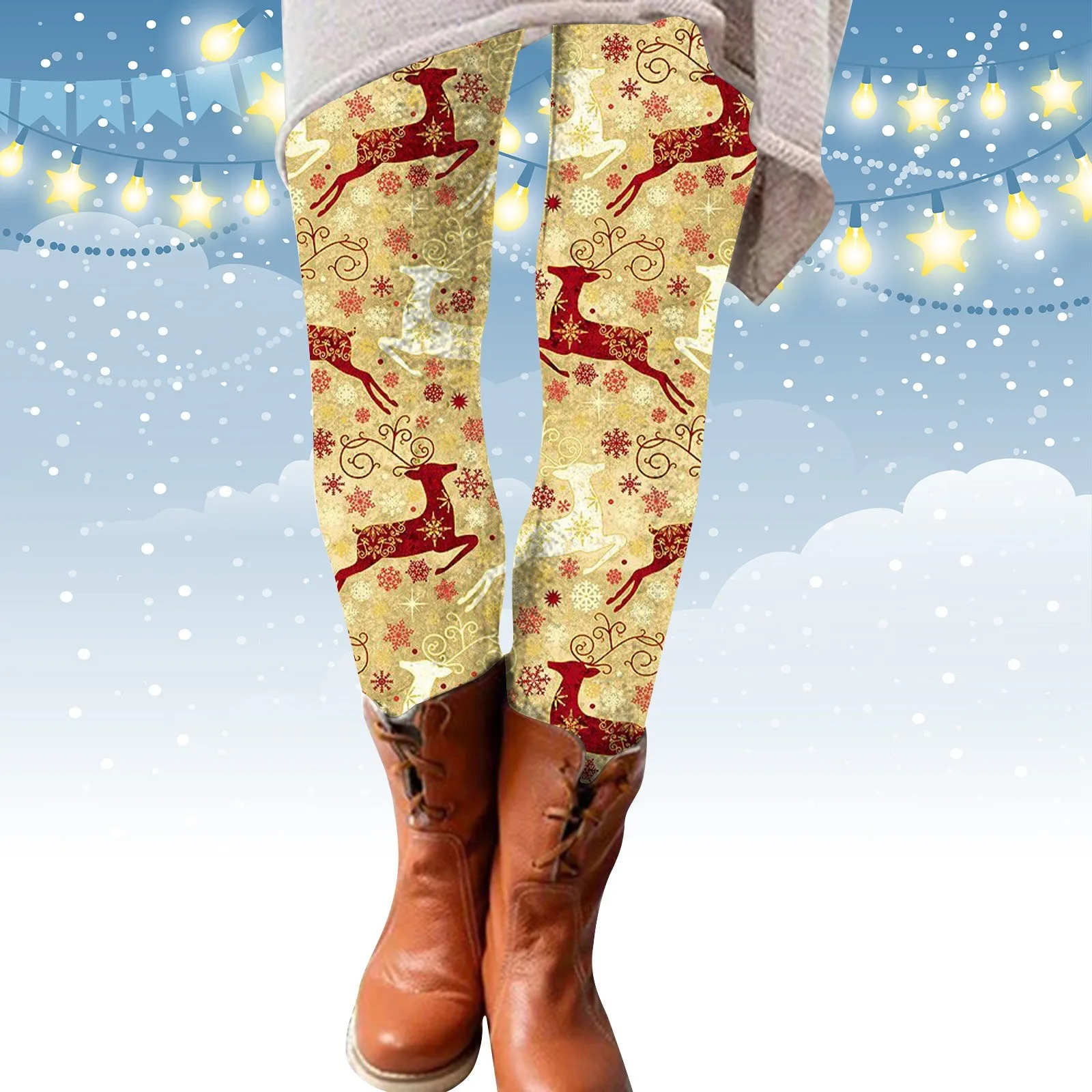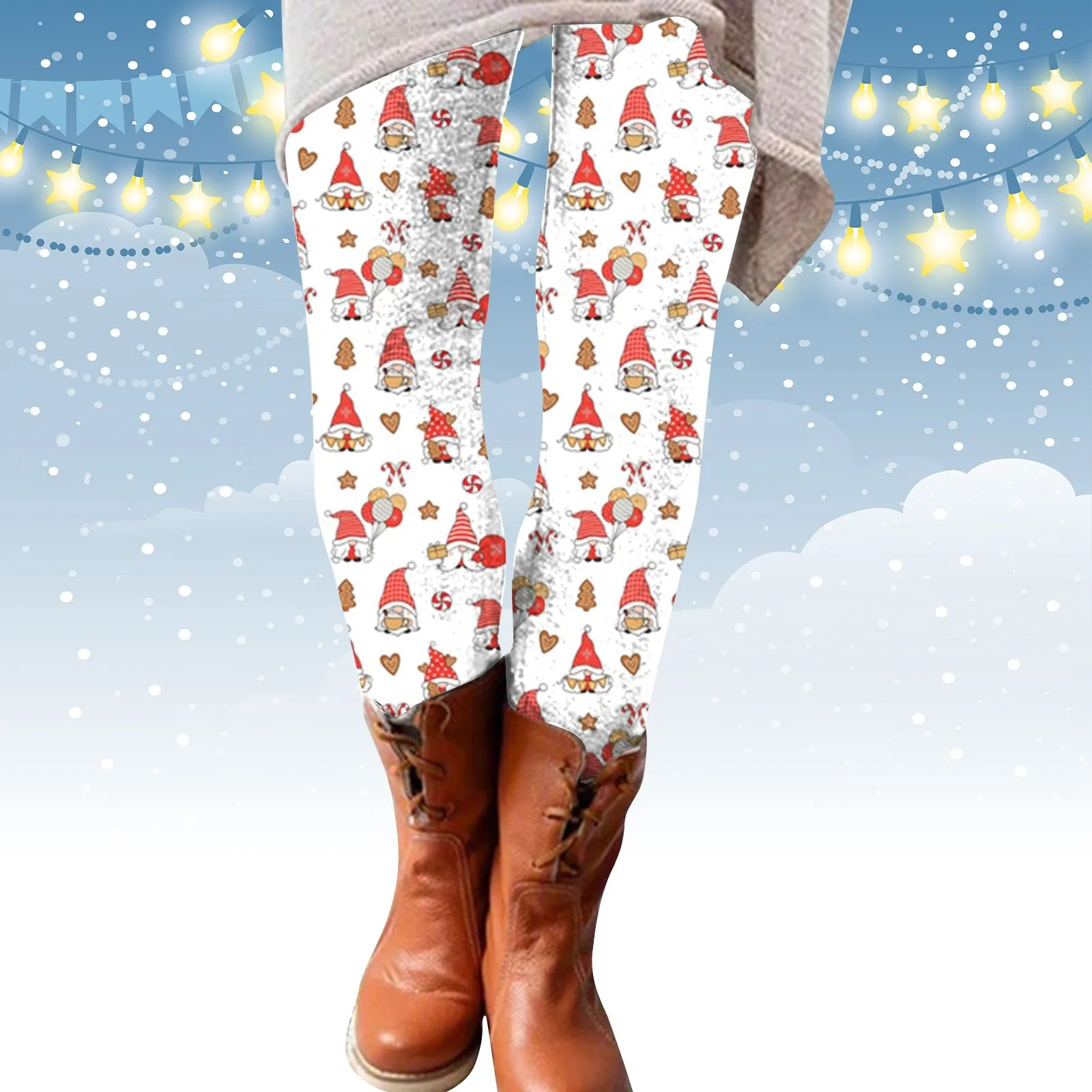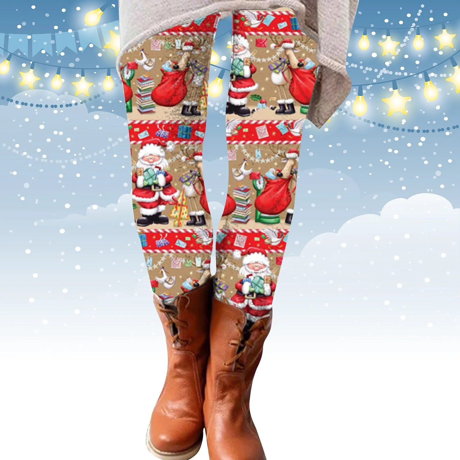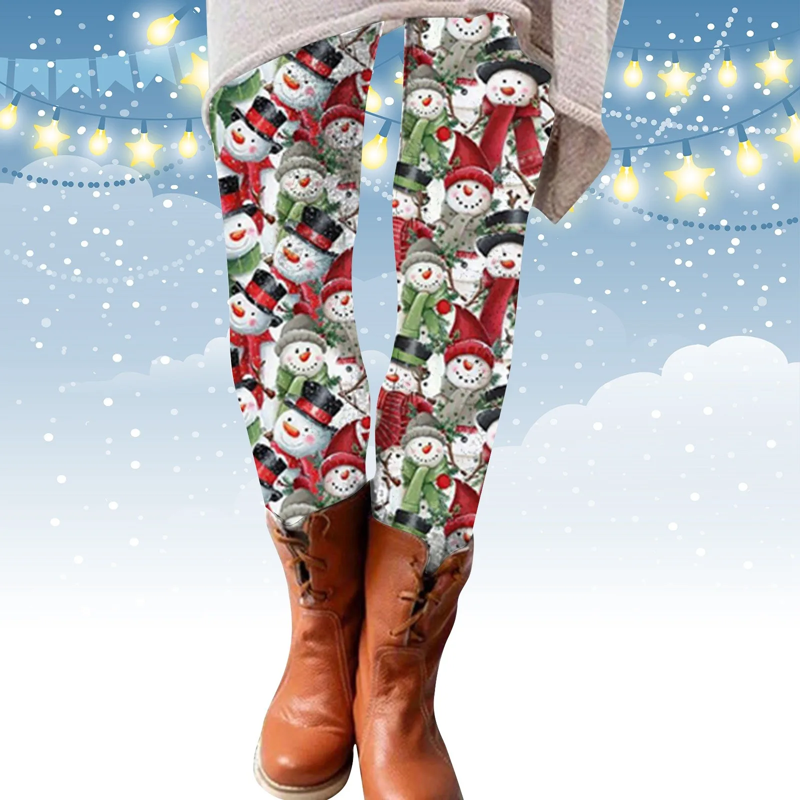 Women Christmas Leggings Cartoon Snowman Printed High Waist Elastic Tights Autumn Winter Y2k Harajuku Skinny Xmas Casual Pants