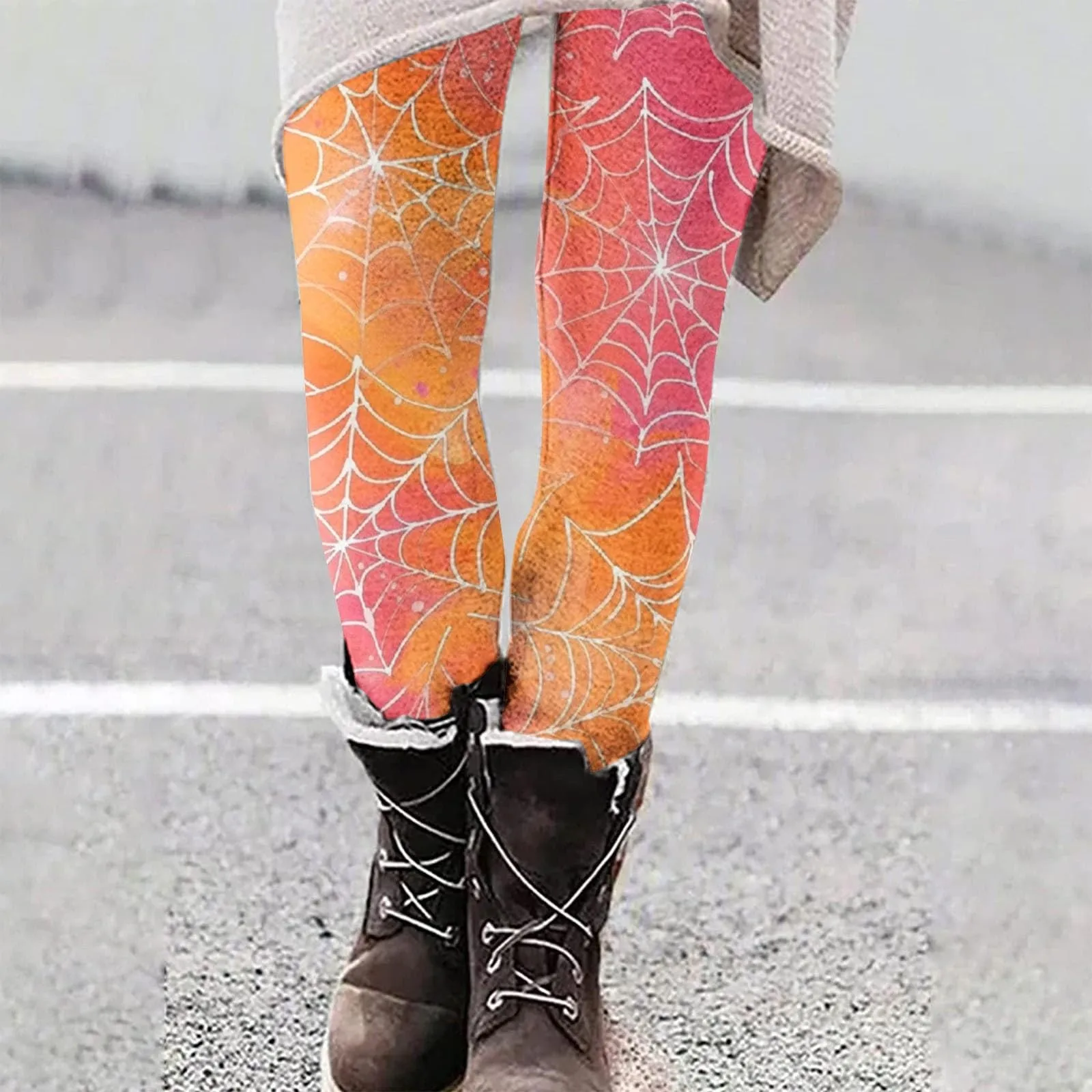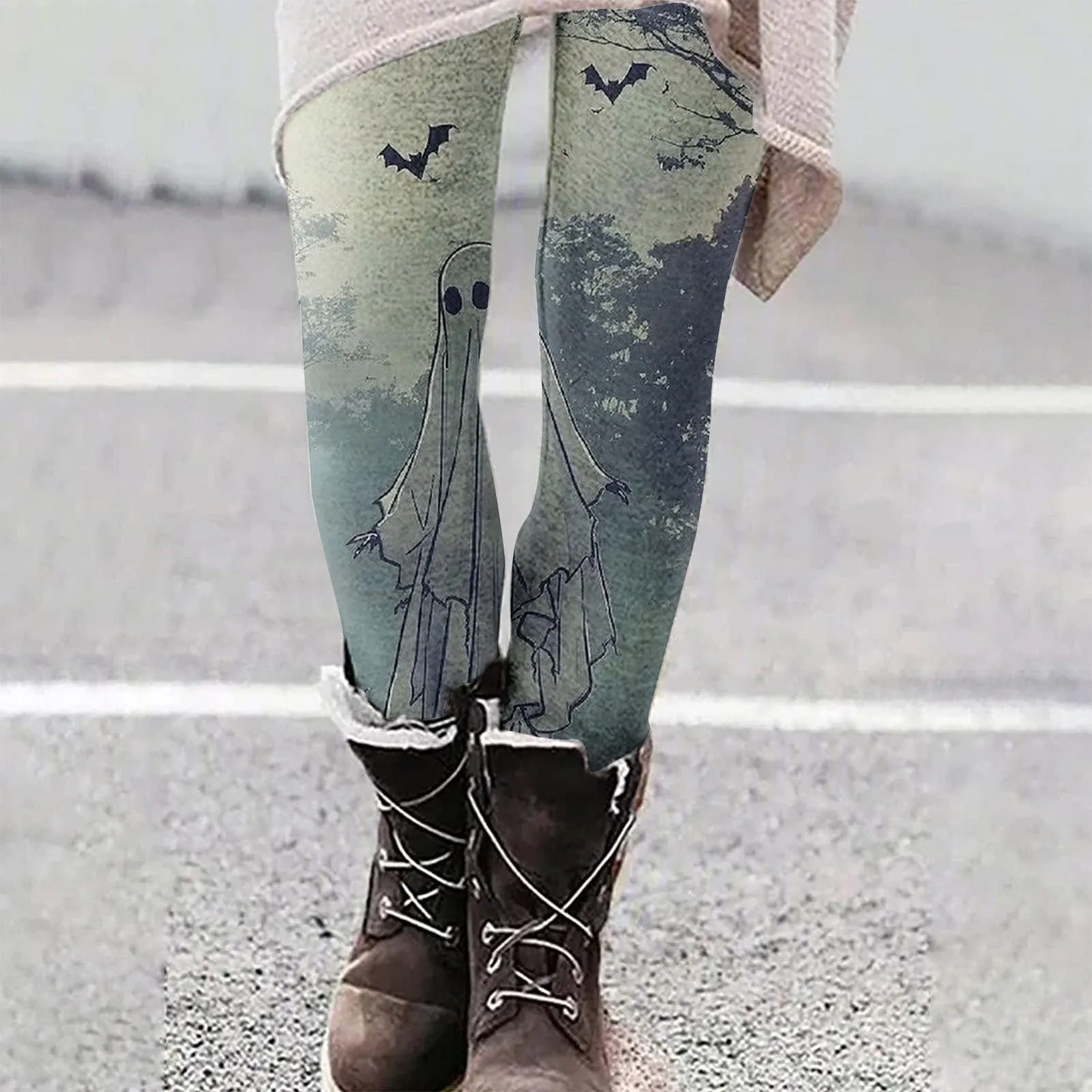 Women'S Fashion Casual Halloween Printed High Waist Slim Fit Leggings Halloween Festival Themed Versatile Warm Internal Pants