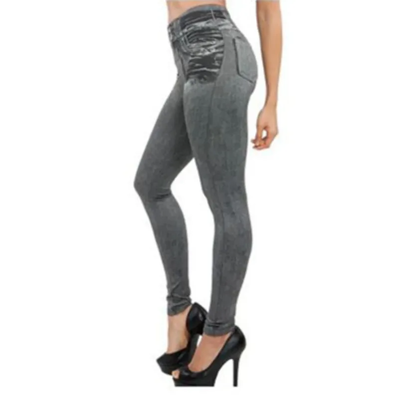 Super High Stretch Imitation Denim Leggings High Waist Slim Fit Jeans Women Casual Elastic Pencil Pants Denim Push Up Jeggings