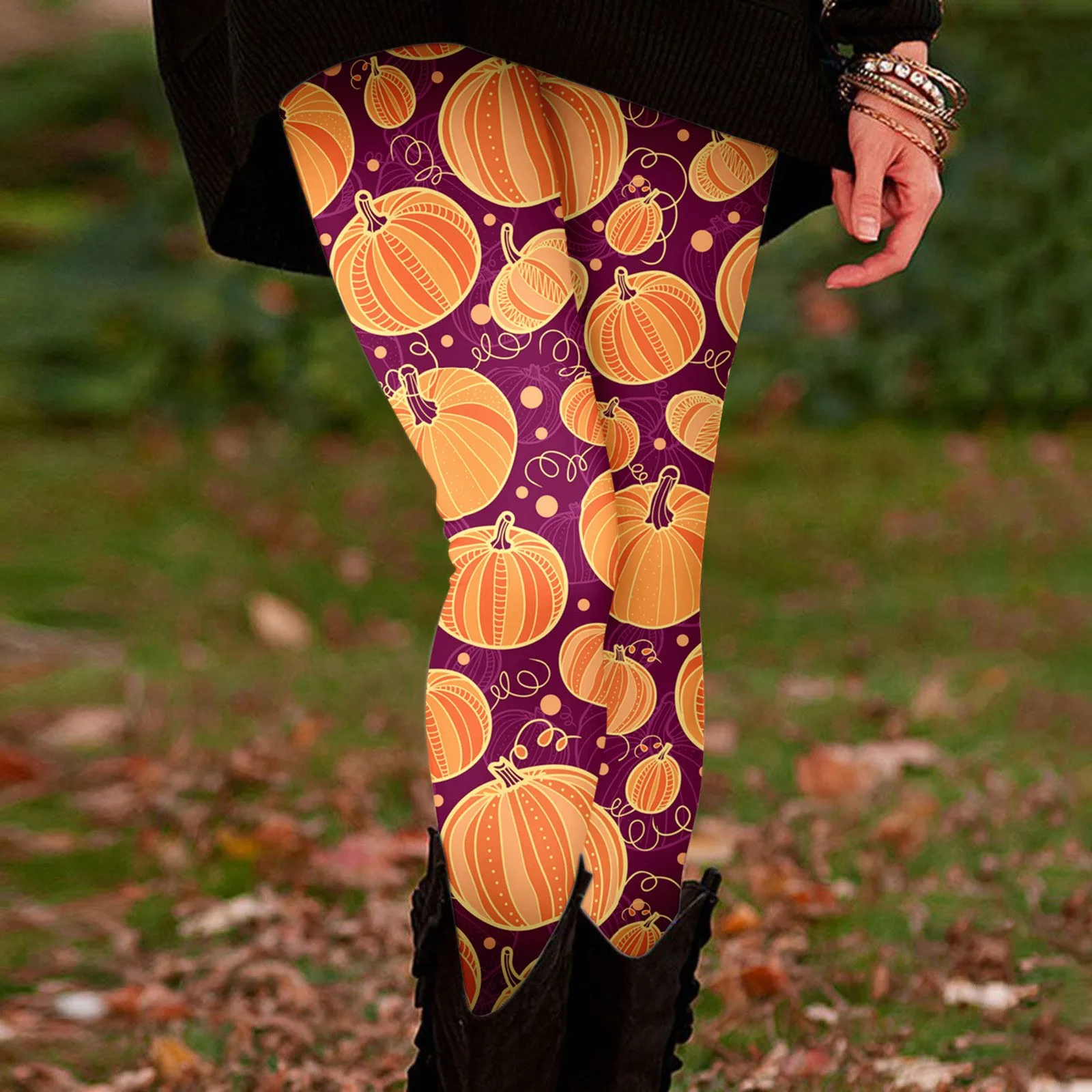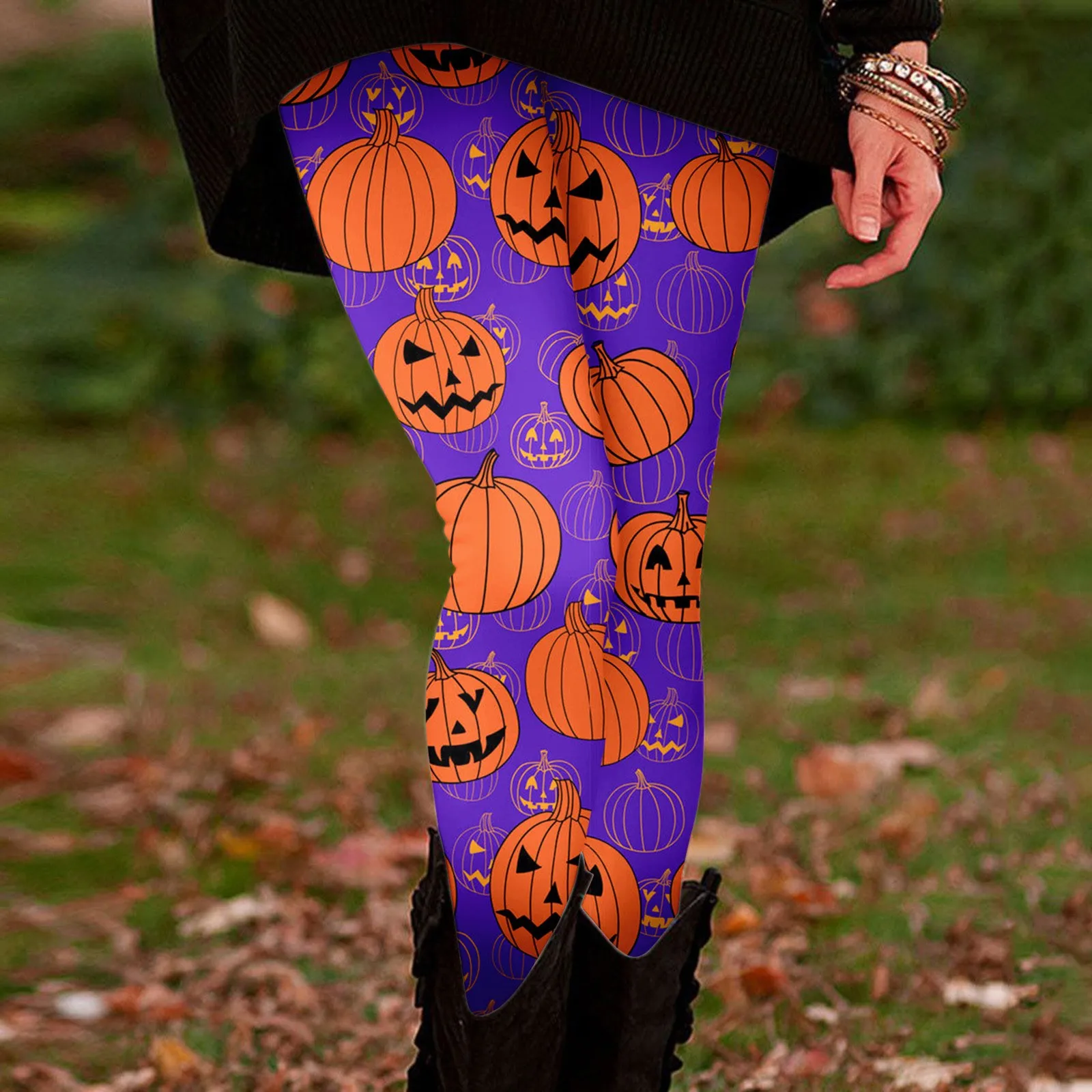 Halloween Costume Pumpkin Print Womens Leggings High Waist Elastic Fitness Sports Legging Female Casual Comfort Pants Streetwear