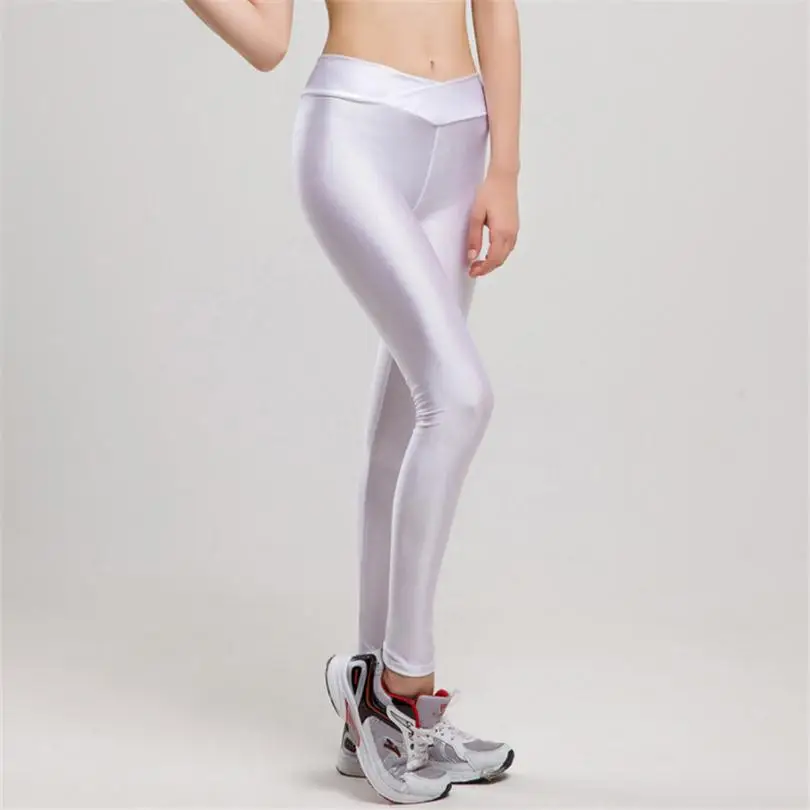 Fluorescent Candy Color Push Up Leggings Women's Clothing Elastic V Waist Exercise Pants High Stretch Fitness Leggins