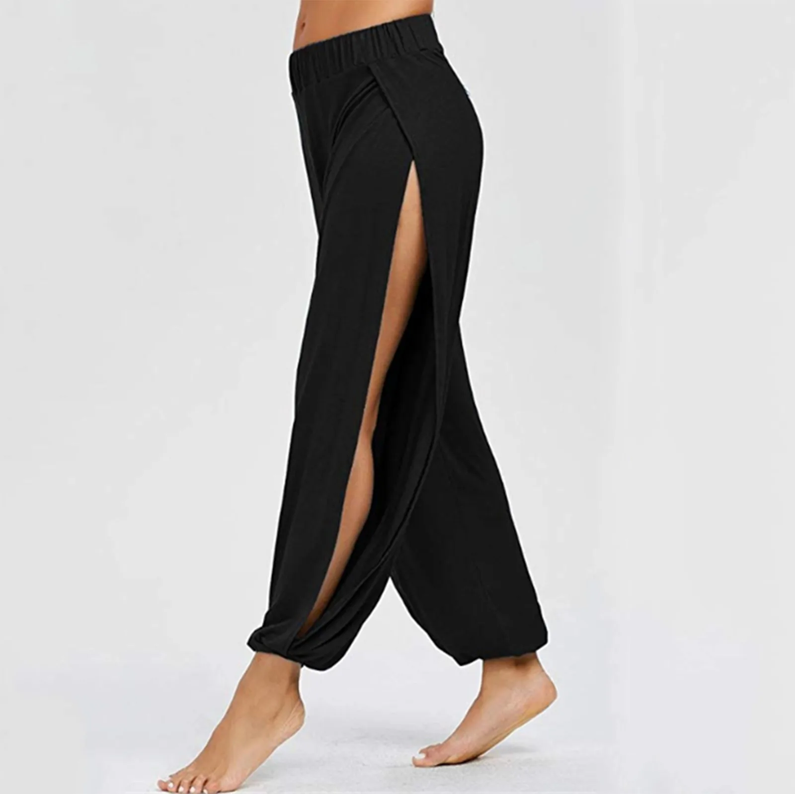 personality Women's Split Exercise Stretch High Solid Pants Color Yoga Convenient Sports Leisure Pants Pregnancy Yoga Pants