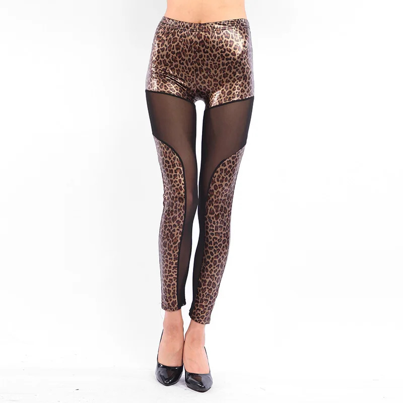Lady Hot and Sexy Punk Rock Metal Leggings Gothic Lace Up Leggings Hip Hop Night Bar Club Ring Cross Legging Fake Leather Pant