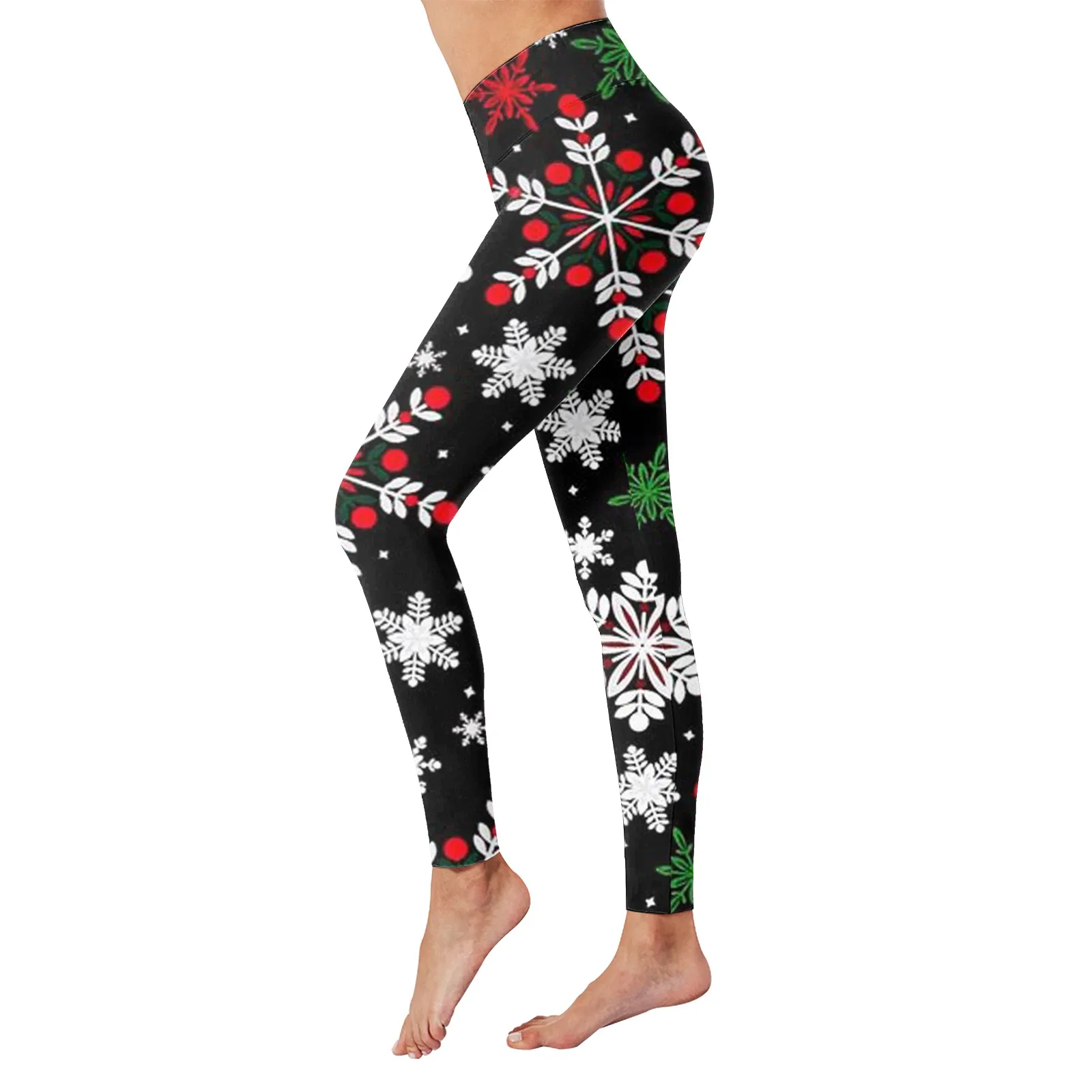 Christmas Leggings Womens High Waist Snowman Print Leggings Running Ladies Elastic Christmas Gift Skinny Leggings Xmas Trousers