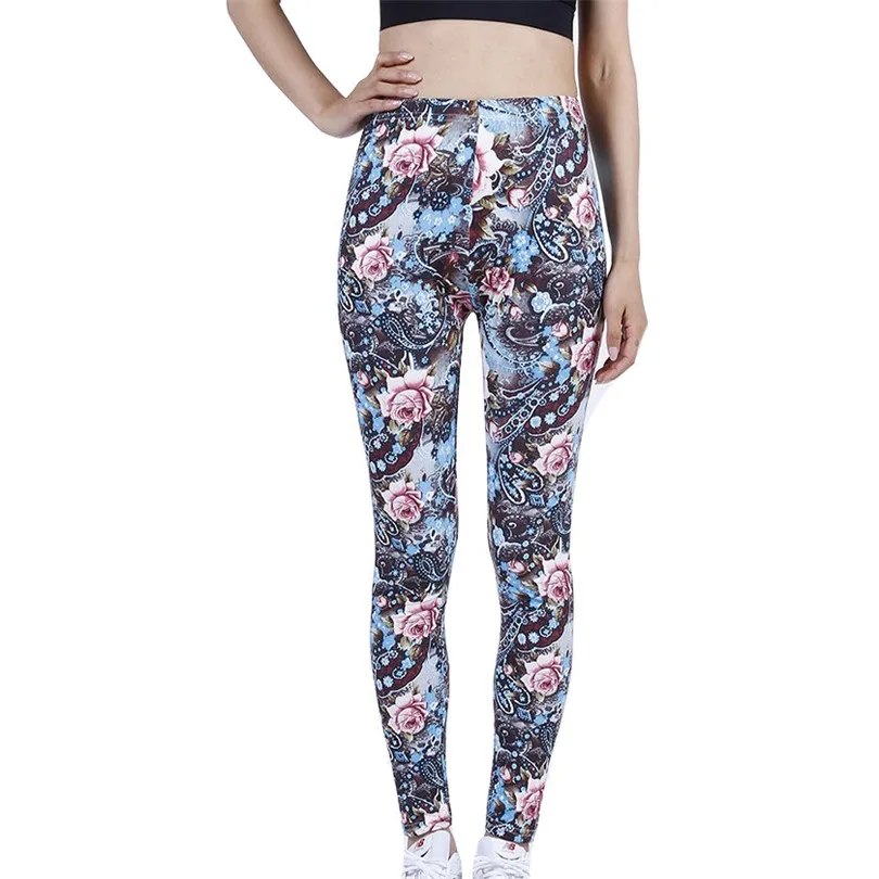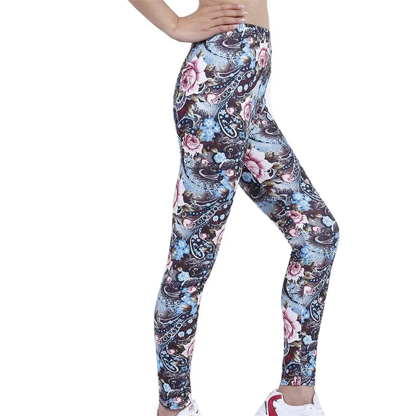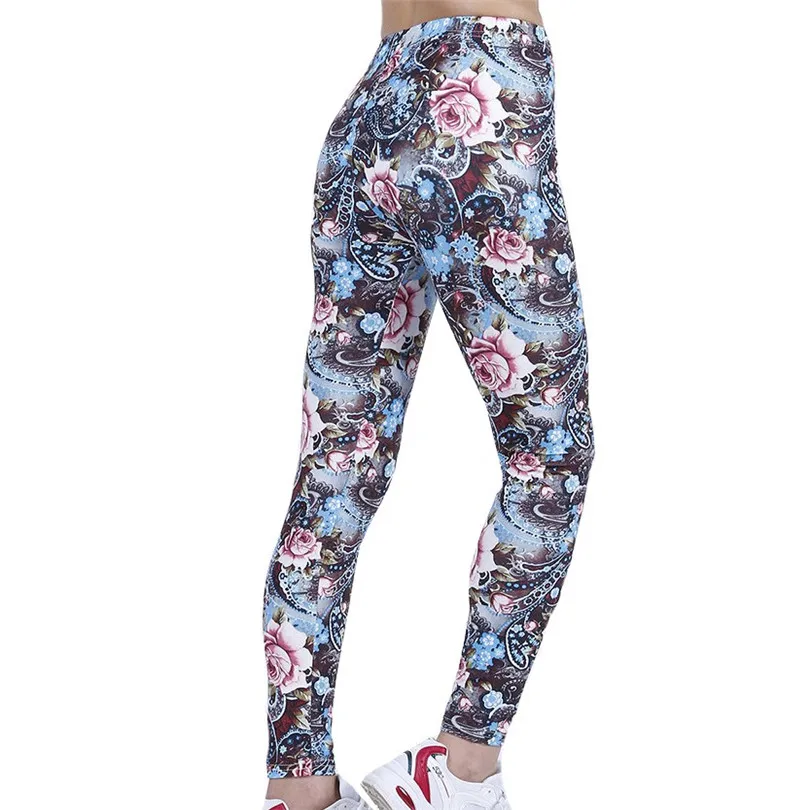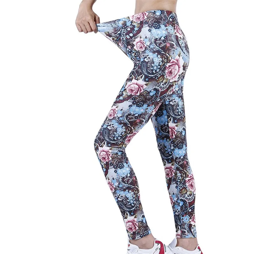LJCUIYAO High Waist Fitness Leggings Women Sexy Coffee Flowers Printed Workout Pants Push Up Slim Elasticity Ankle-Length Bottom