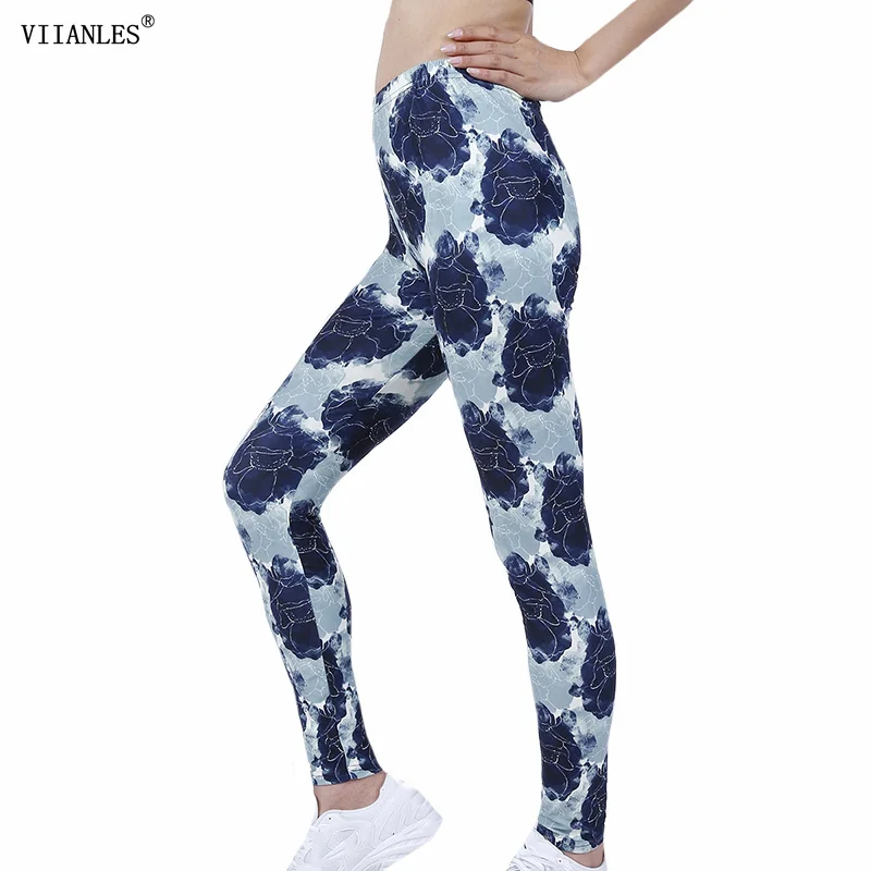 VIIANLES Summer Style Hot Leggings For Women's Printing Elasticity Pants Drop Ship Stretch Jeggings Sexy Fitness Push Up Gym