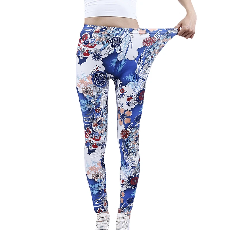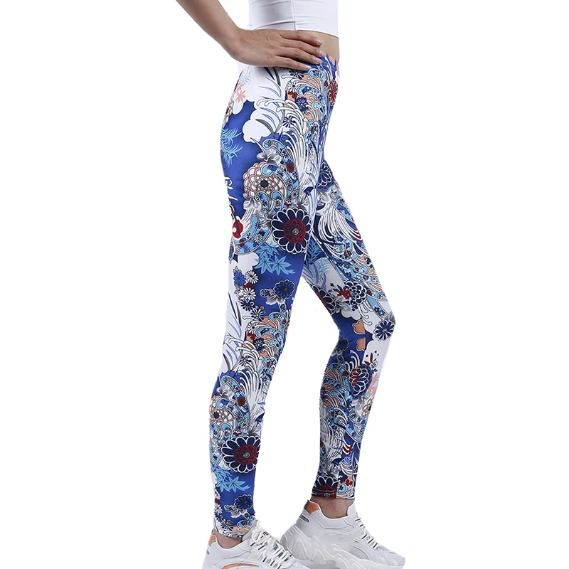 VIIANLES 2021 New Women's Mid Waist Legging Floral Pattern Leggins Colorful Print Stretch Trousers Push-Up Gym Clothing Skinny