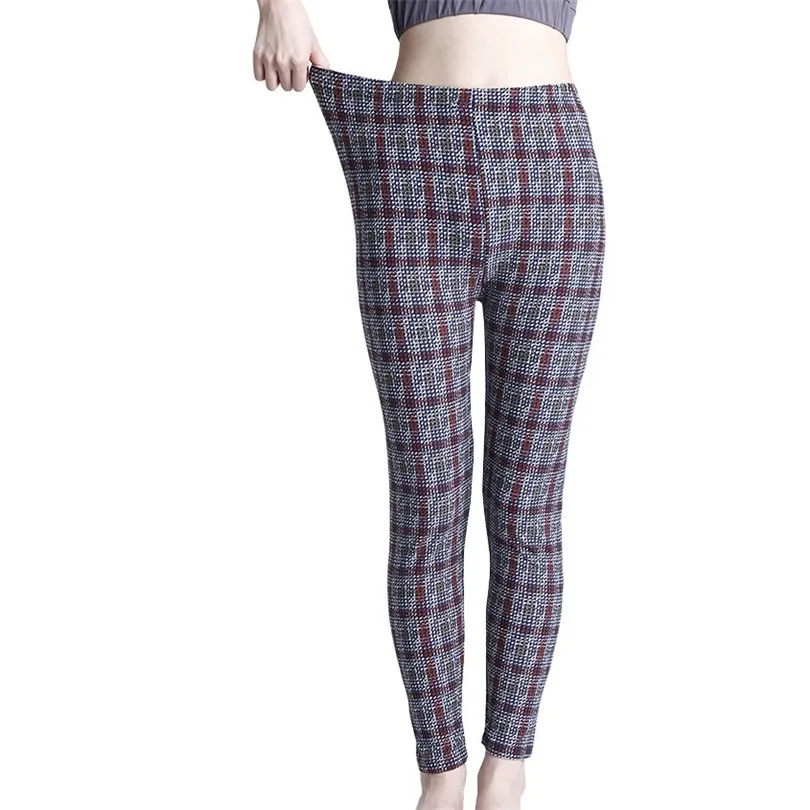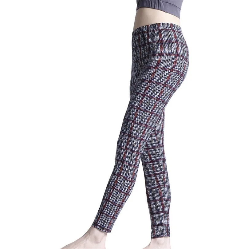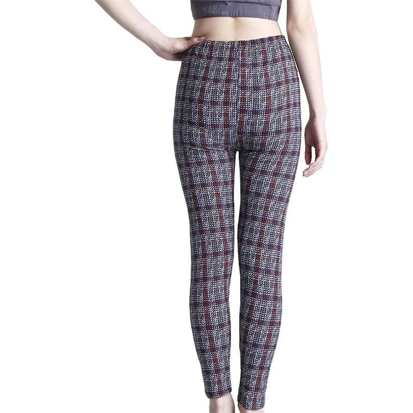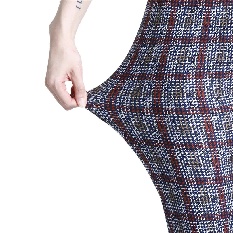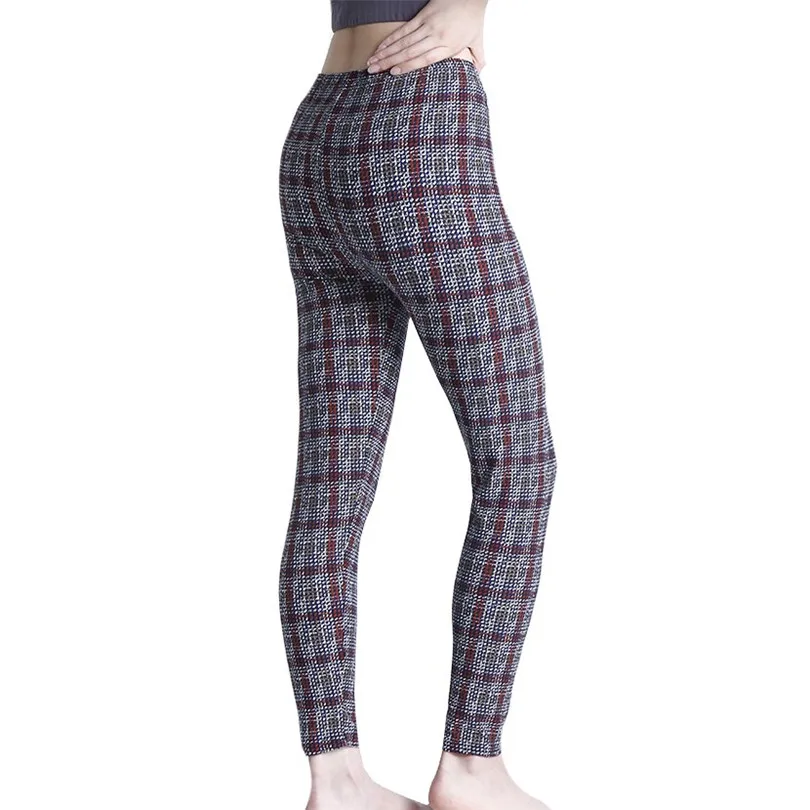 LJCUIYAO Women Leggings Grid Print Exercise Fitness Elasticity Plaid Push Up Female Trousers Ankle Length Polyester Gym Pants