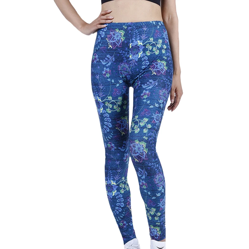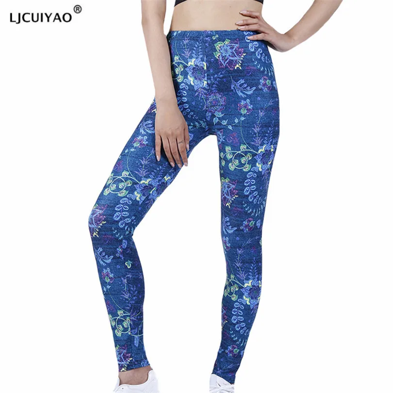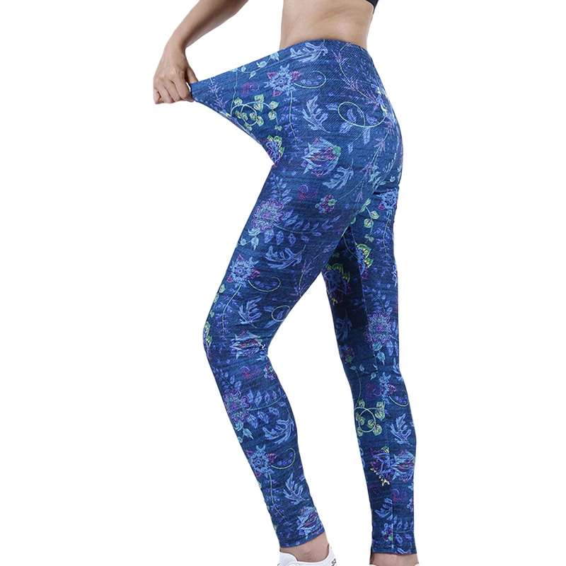 LJCUIYAO Women Elastic High Waist Yoga Pants Push Up Running Jogging Sports Athletic Tight Hip Retro Floral Knitted Leggings