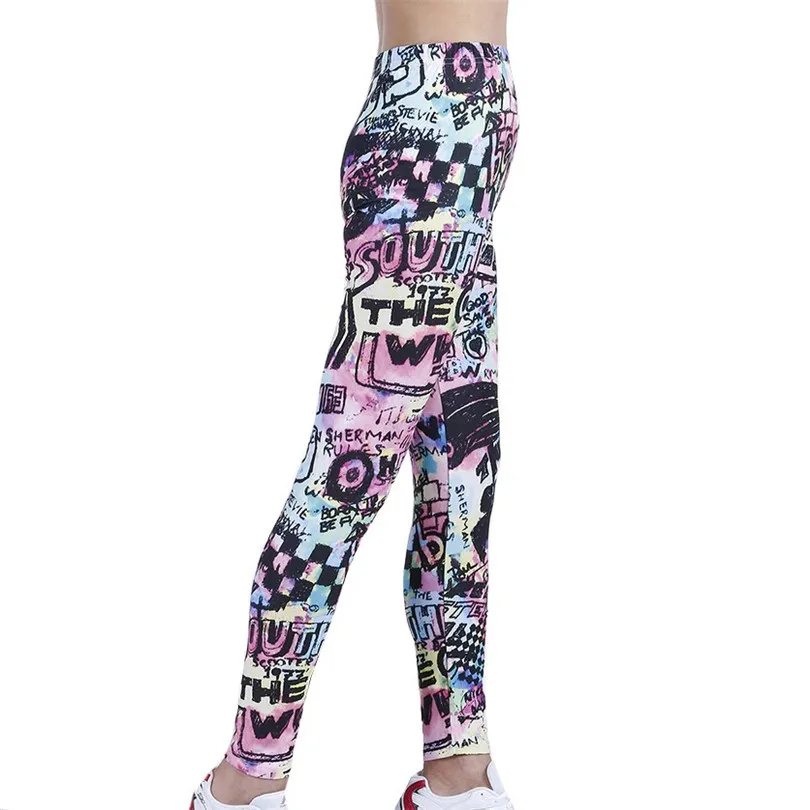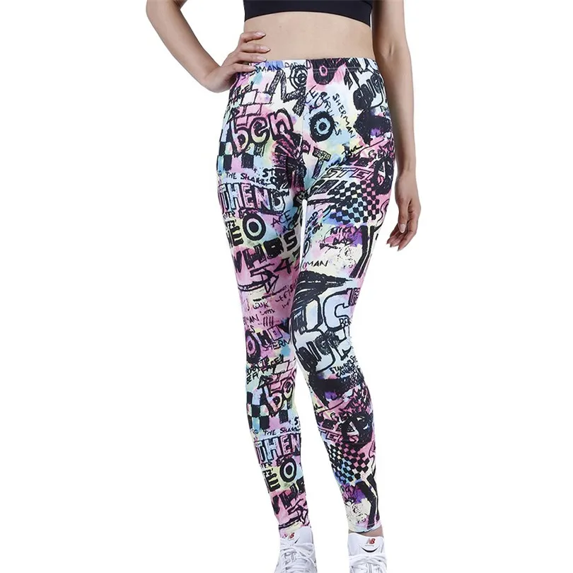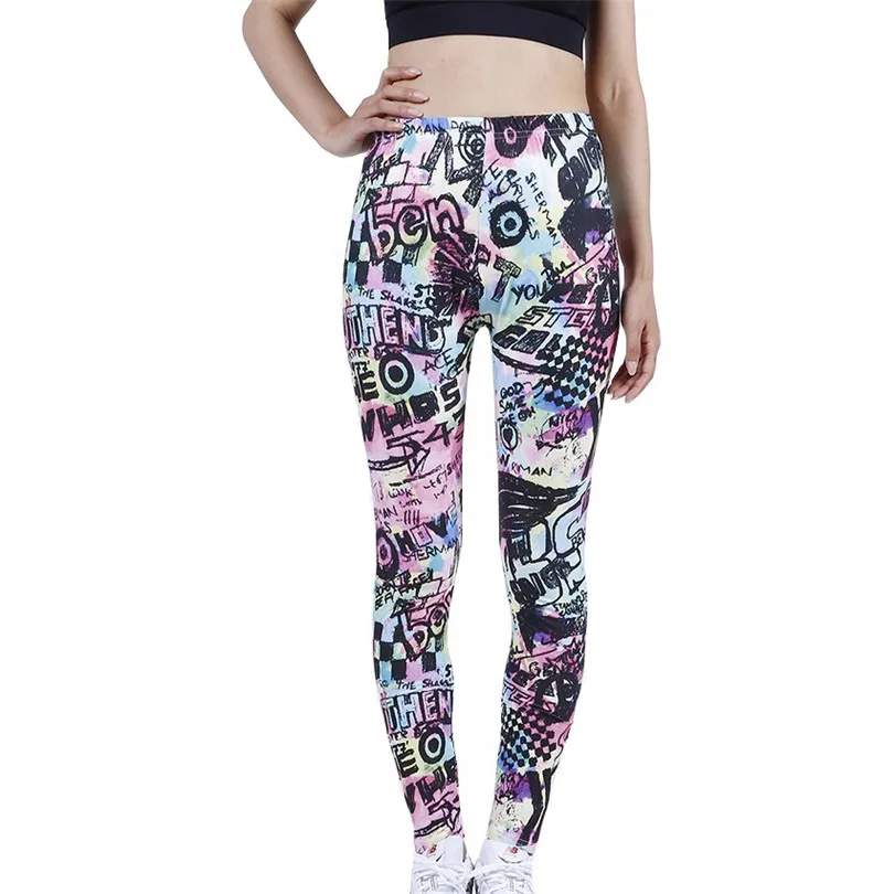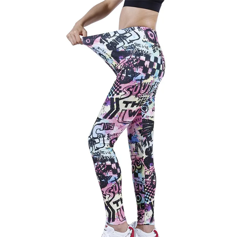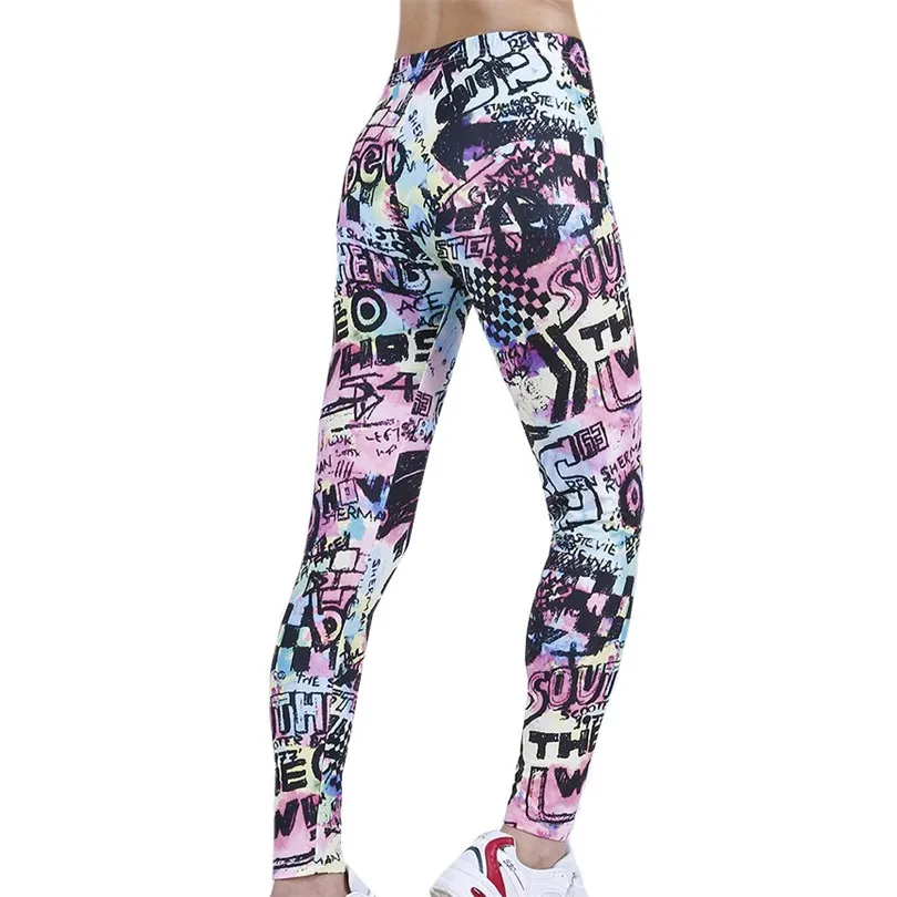 INDJXND Push Up Leggings Sport Women Fitness High Waist Pants Colored Letters Graffiti Pattern Polyester Ankle-Length Bottom