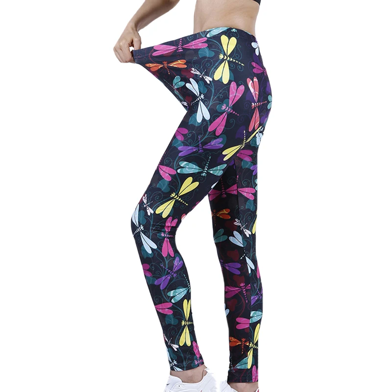 LJCUIYAO Push Up Leggings Women High Waist Tights Sport Yoga Pants Gym Exercise Fitness Running Color Dragonfly Pattern Trousers