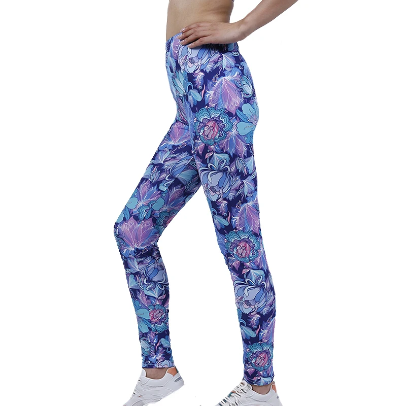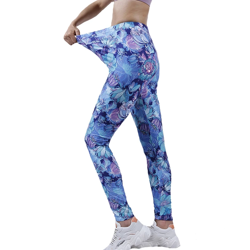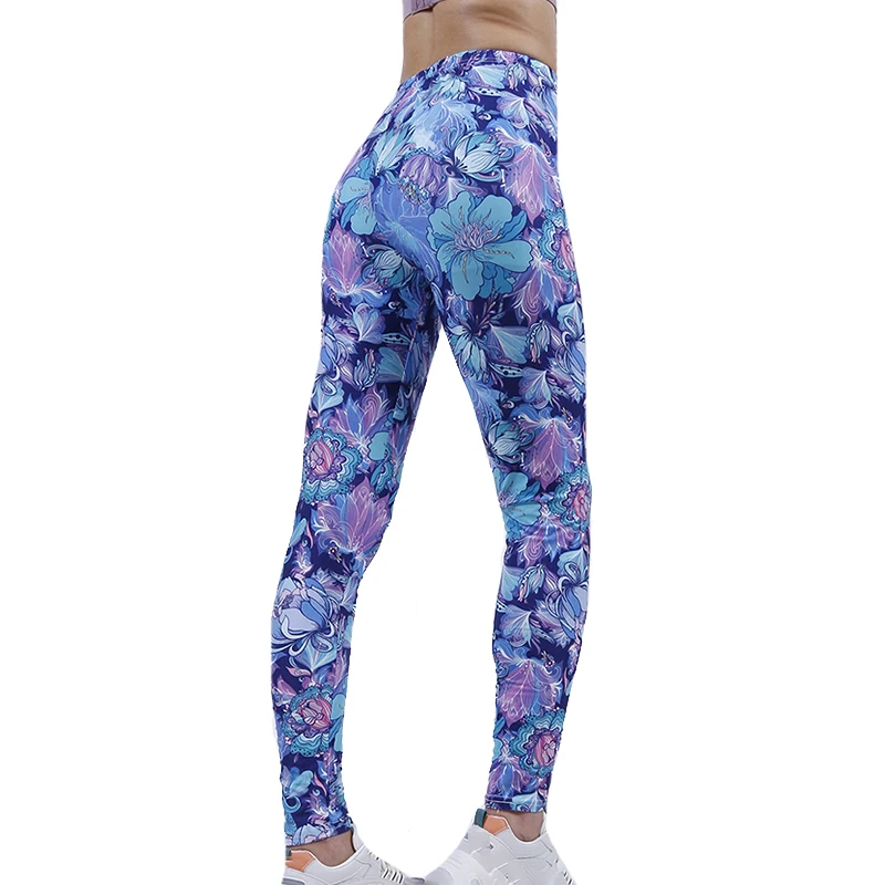 LJCUIYAO Flowers Pants Fitness Sports Leggings Female Running Trousers High Waist Polyester Ankle-length Sportswear New Clothes