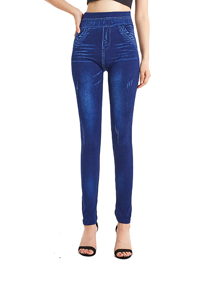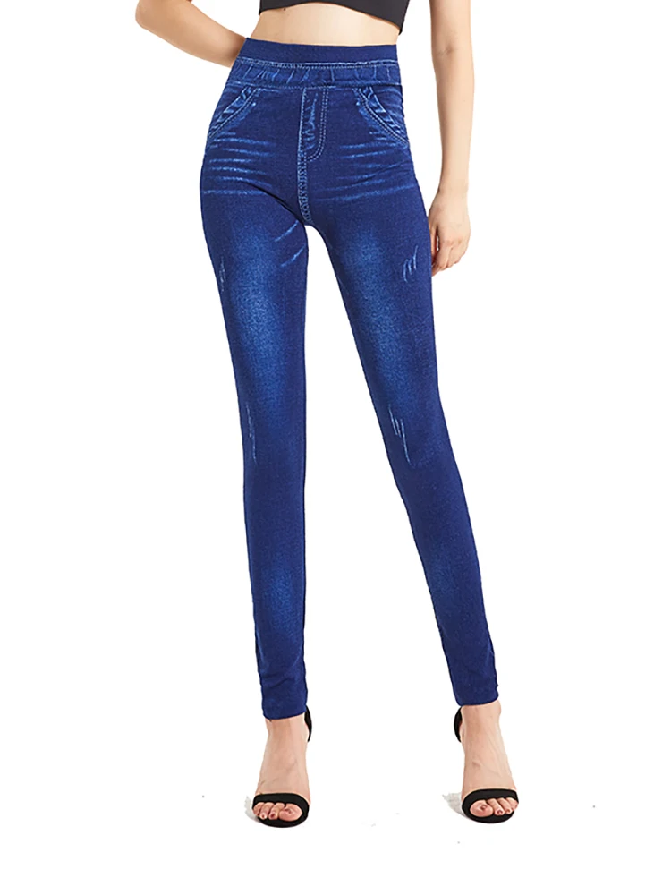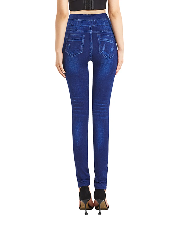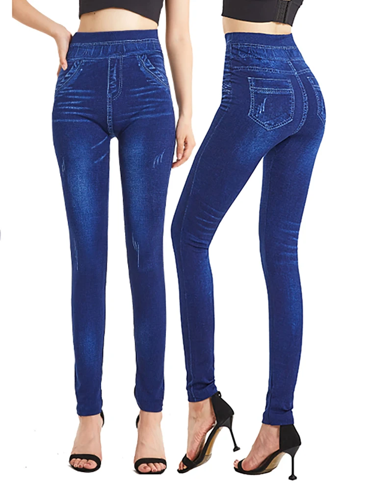 LJCUIYAO New Fitness Yoga Women Leggings Pocket Printing Casual Faux Denim Jeans Plus Size Pencil Pants Casual Jeggings S-3XL