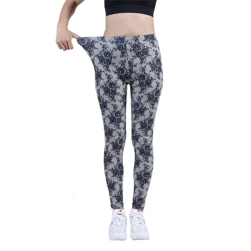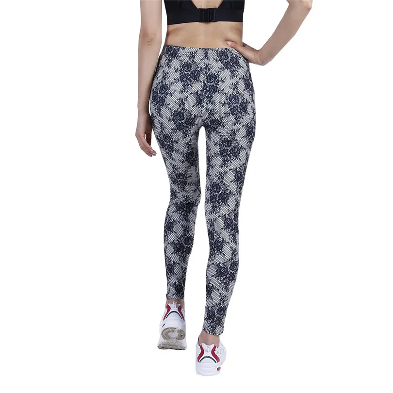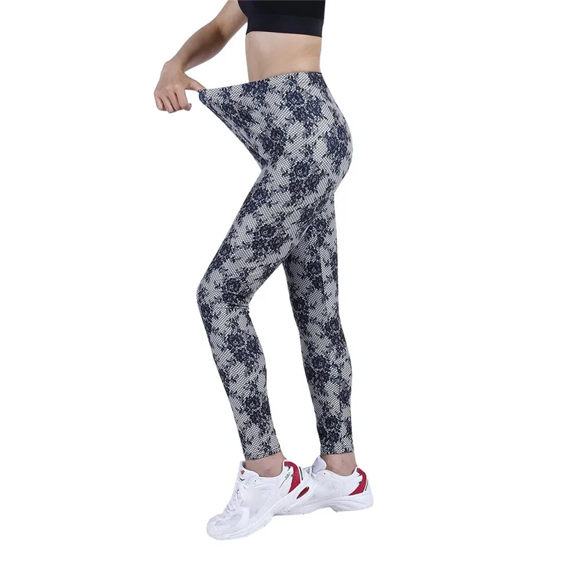 LJCUIYAO High Quality Leggings Gym Girl Push Up Sport Fitness Running Snake Print Pants Elastic Women Flower Pattern Trousers