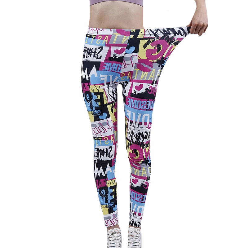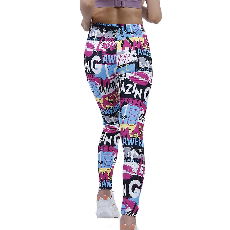 LJCUIYAO Women's High Waist Breathable Slim Stretch Leggings Fitness Running Gym Push Up Sports Colored Letters Love New Pants