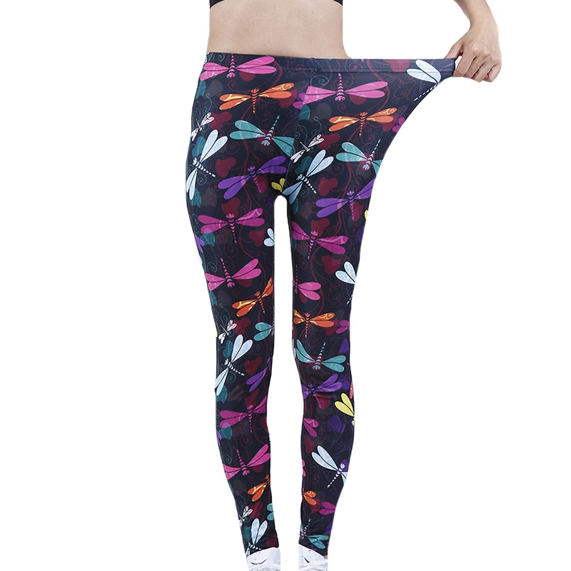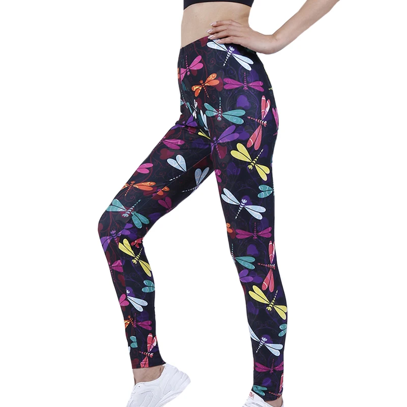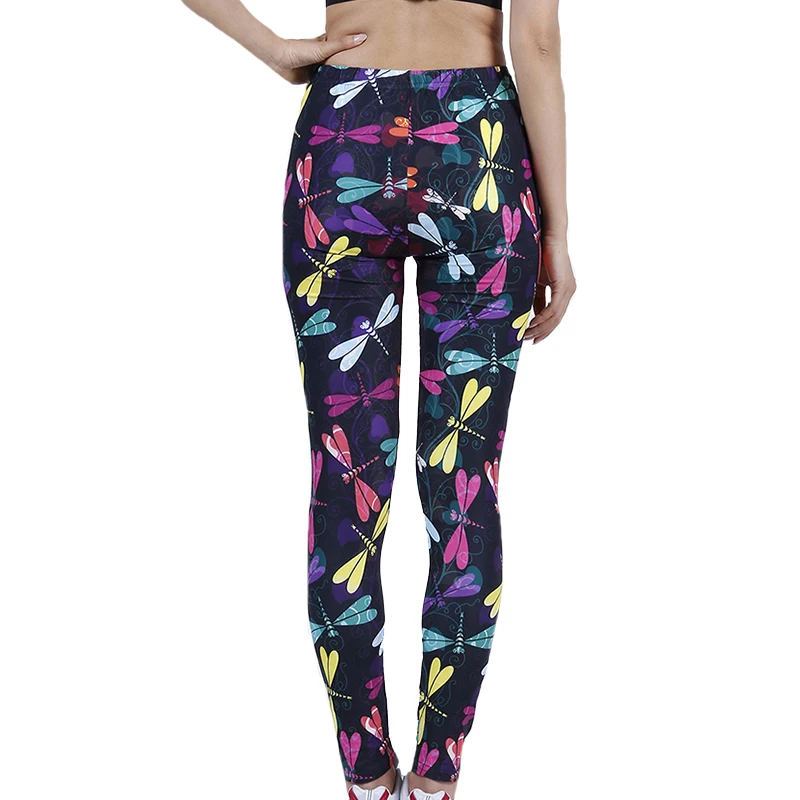 CUHAKCI Women Dragonfly Printed Exercise Colorful Female Elastic Leggins High Waist Push Up Soft Pants Drop Ship Trouser Fitness