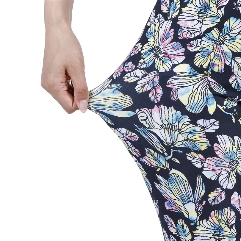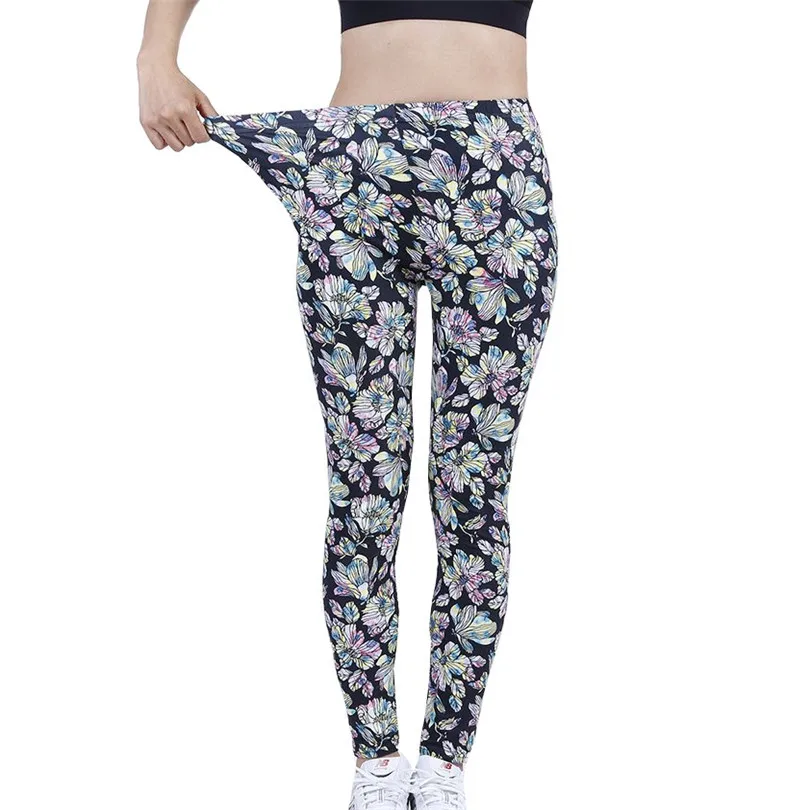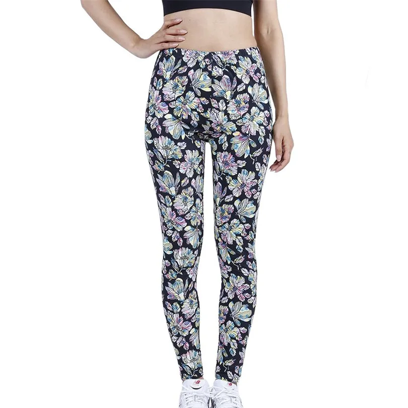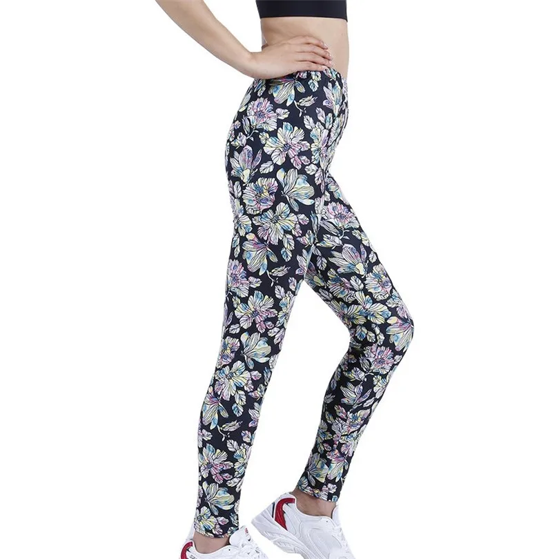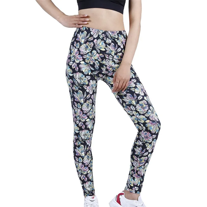 YRRETY Fitness Leggings Femme Polyester Ankle-Length Breathable Pants Leggins Women Standard Yellow Pink Flower Push Up Bottom