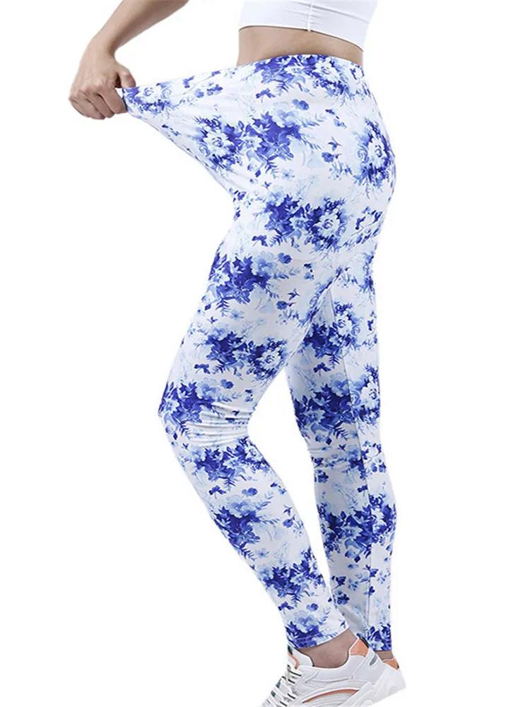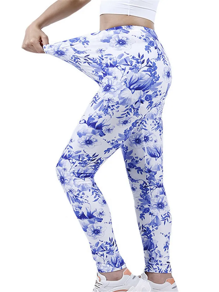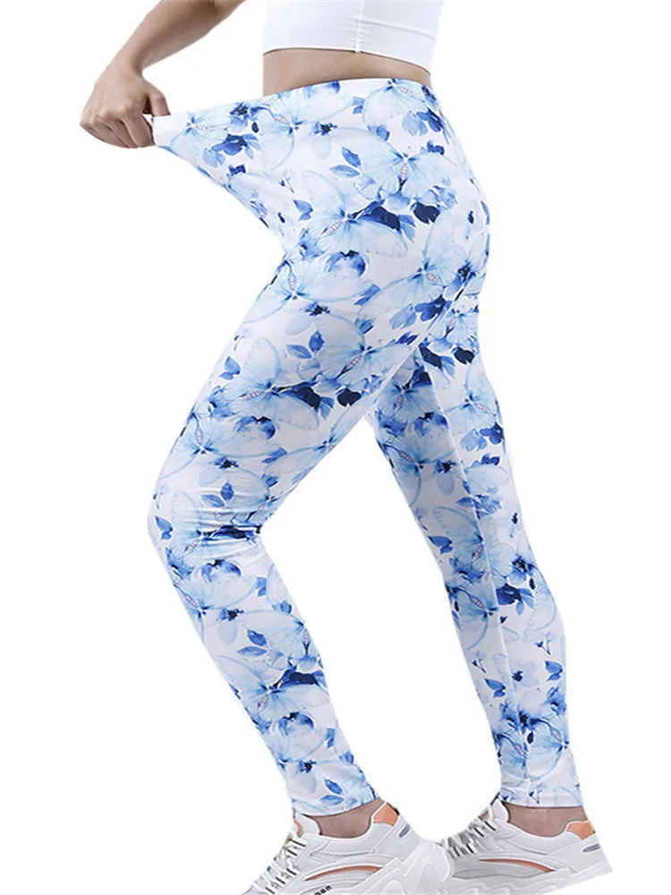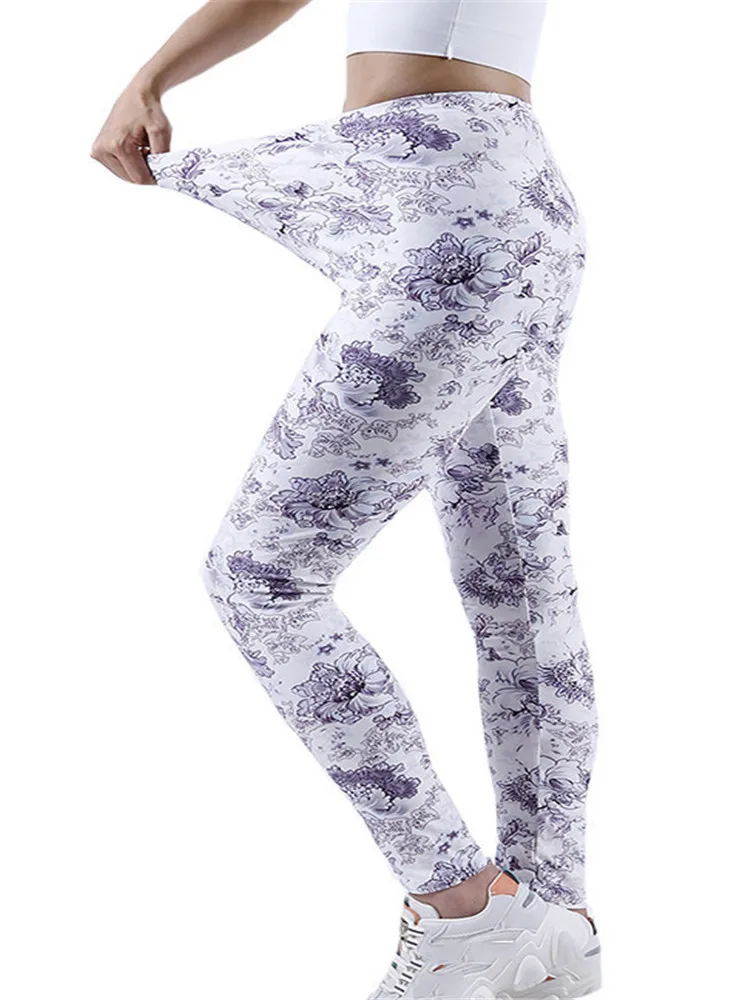 YRRETY Women Pink Flower Printing Leggings Workout High Waist Push Up Mujer Fitness Polyester Gym Running Tights S-XXL Pants