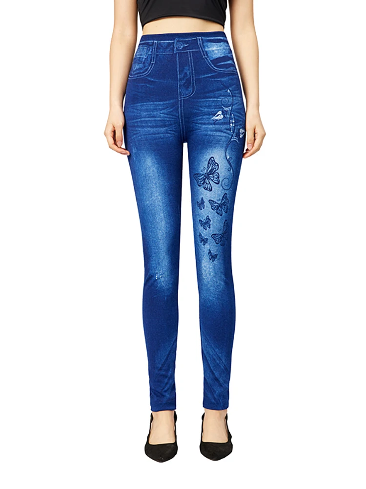 YGYEEG Women Jeggings Left Butterfly Print Sexy Slim Fit Legging Skinny Workout Faux Jeans Plus Size Lady Fake Denim Pencil Pant