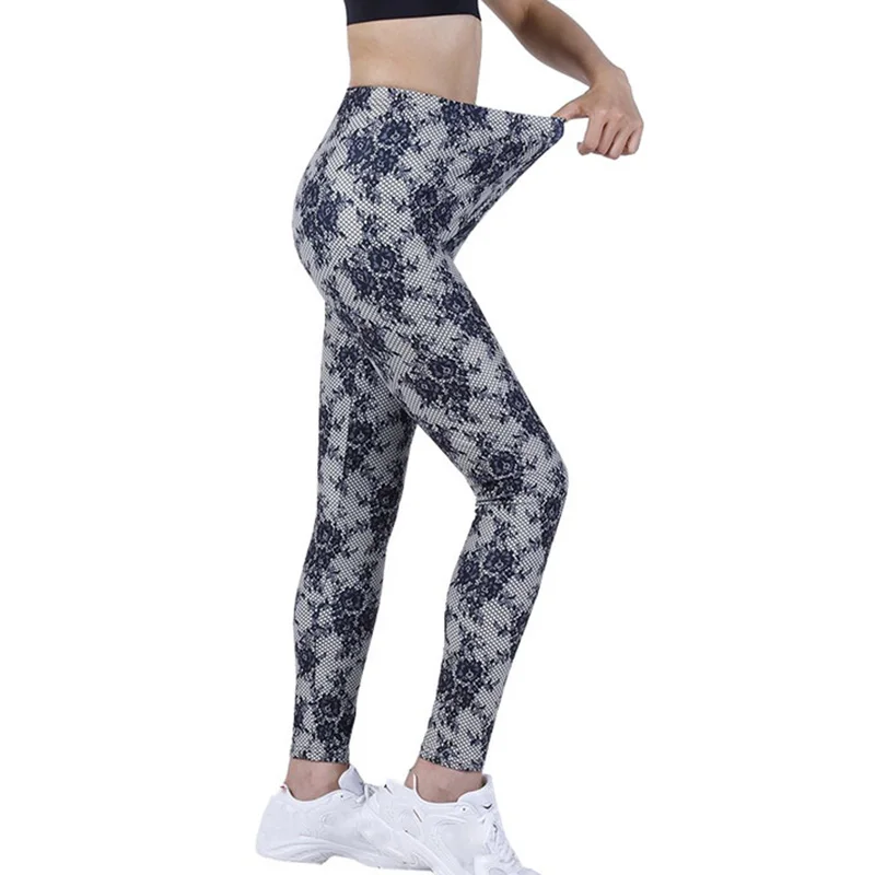 CUHAKCI 2022 Women Leggings Flower Print Slim Fitness Woman Leggins Workout High Waist Pants Running Push Up Jegging