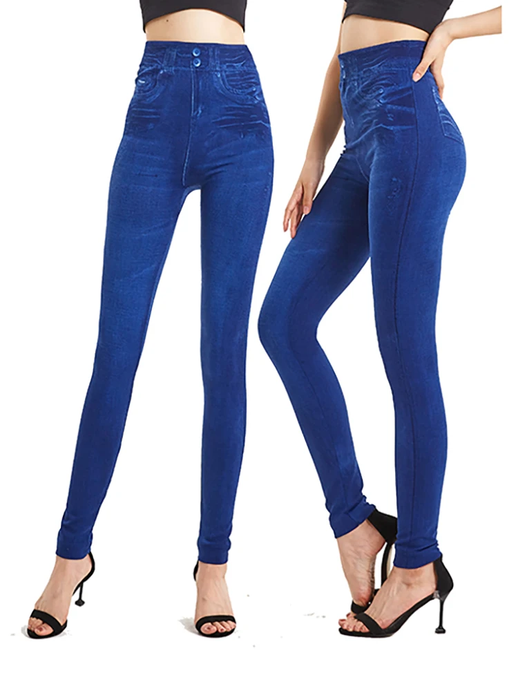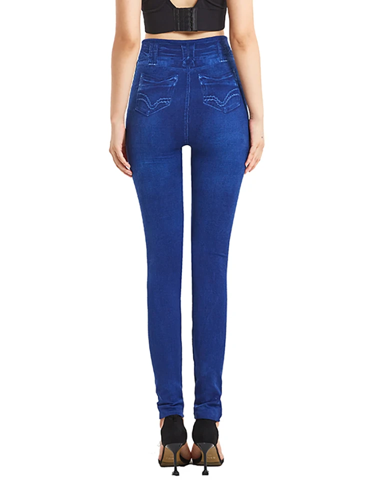 INDJXND Solid Colors Spring Women Plus Size Jeggings Fake Jeans High Waist Stretchy Sports Fitness Leggings Casual Pants S-3XL