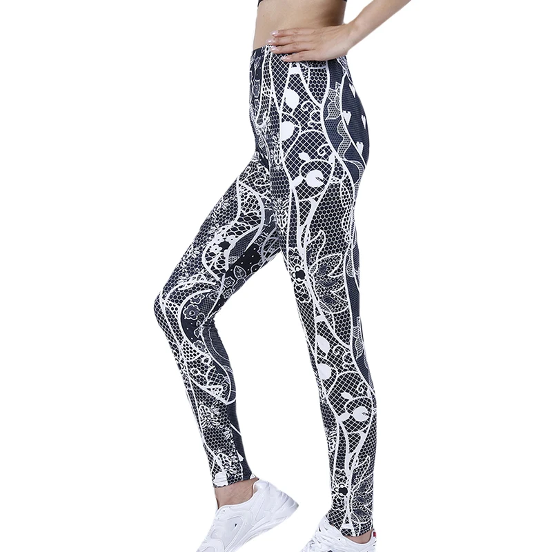 CUHAKCI Summer New Arriaval Black White Love Floral Printed Leggings Women Sexy Fitness Activewear Elastic Trousers Dropship