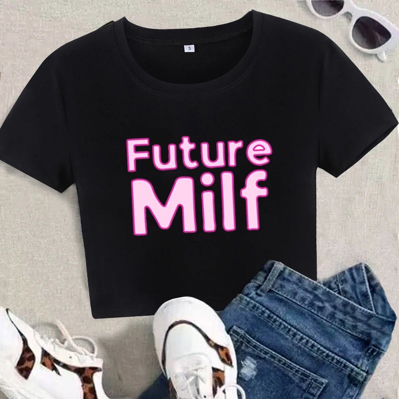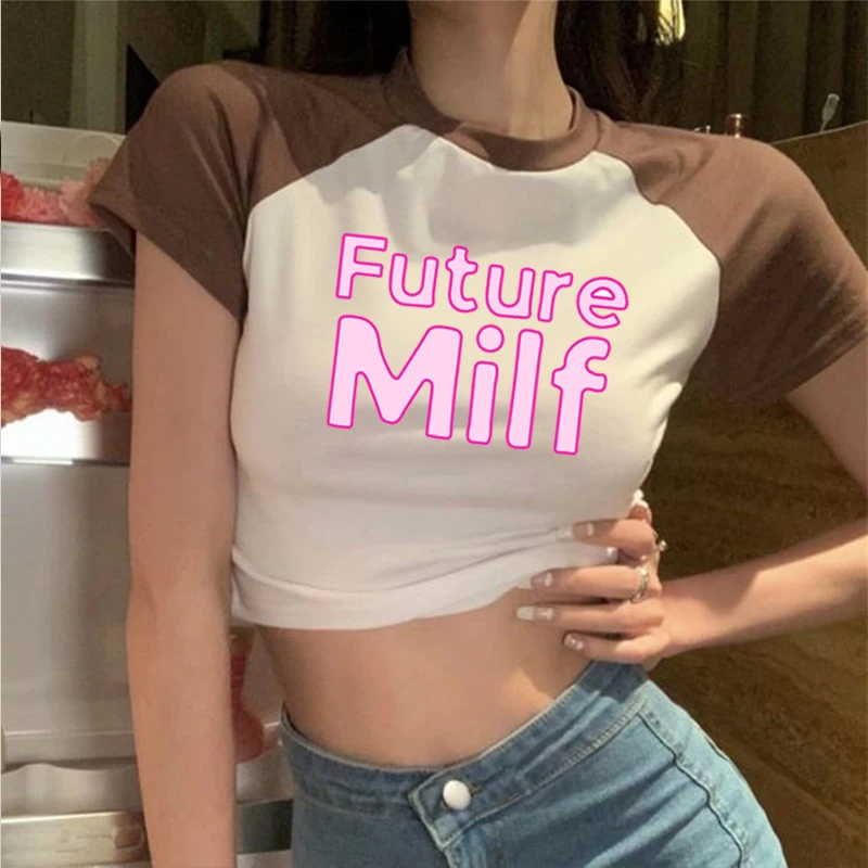 Future Milf Y2k Vintage Streetwear Women's Cropped Tops Women Baby T-Shirt Cropped T-Shirts Printed Raglan Short O-Neck T-Shirts