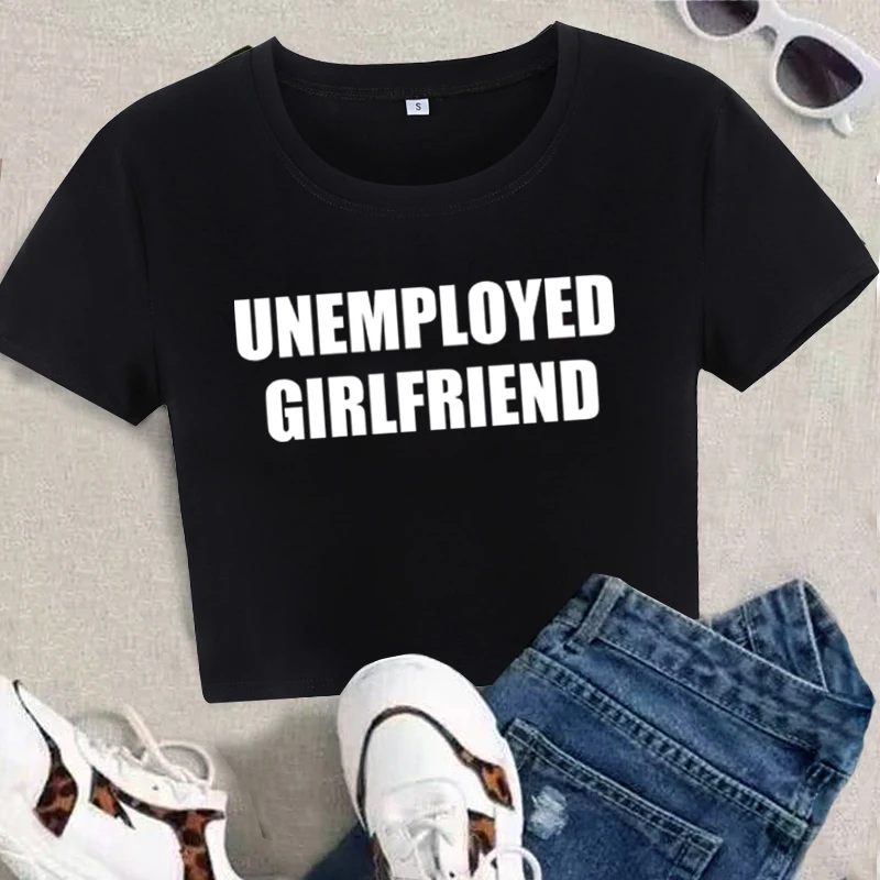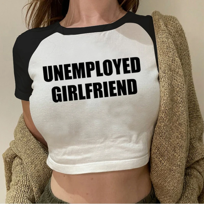 Summer Fashion Girl Baby Tee Slim Aesthetic Women's T-Shirt Unemployed Girlfriend Letter Graphic Crop Tops Gothic Streetwear