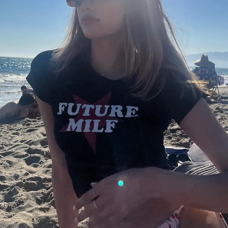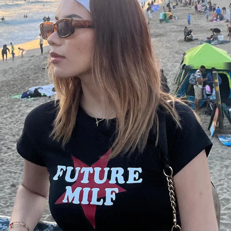 Future Milf Star Graphic Y2k Crop Tops Short Raglan Sleeve Women Tshirt Party Female Sexy Baby Tee 2000s Party Grunge Streetwear