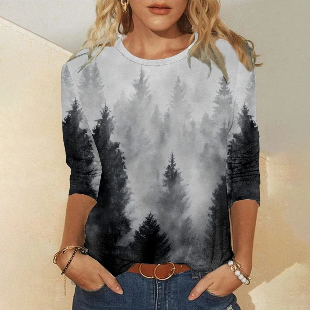 Women's Nature Scenery Graphic T-Shirt Fashion Casual Long Sleeve T-Shirt Breathable Casual Designer Clothing