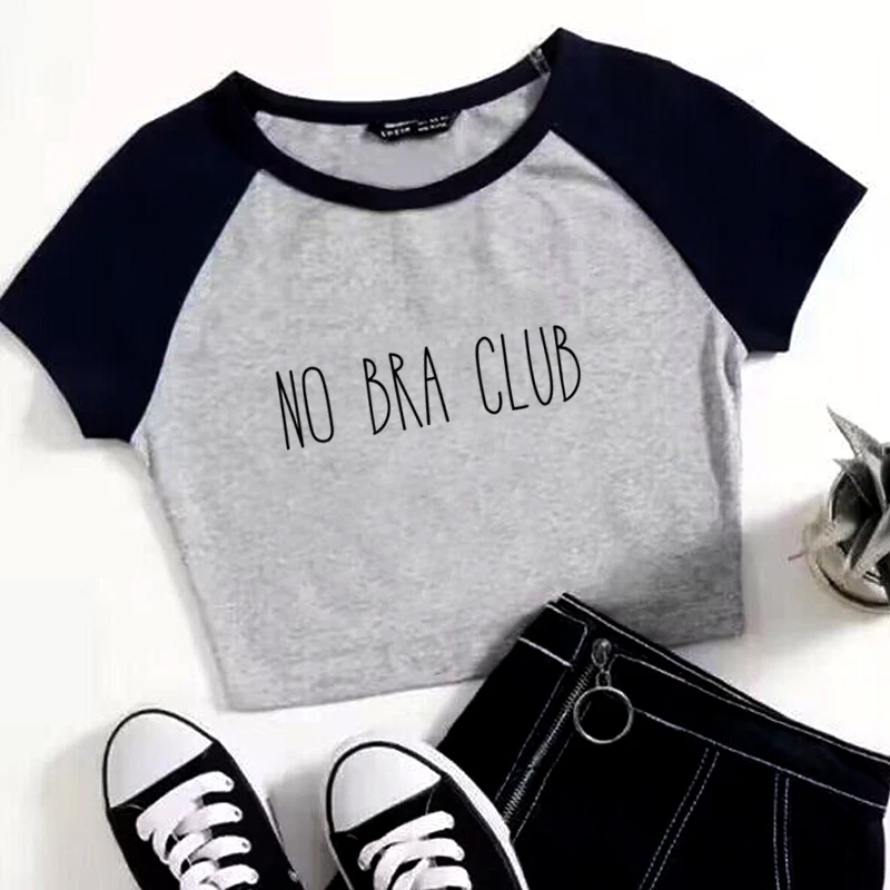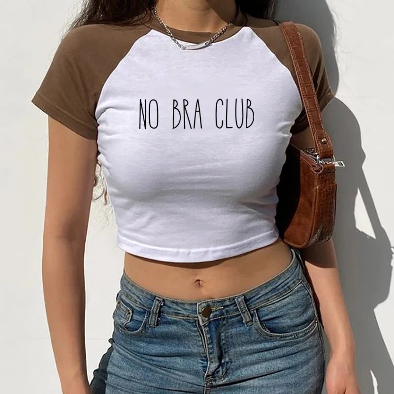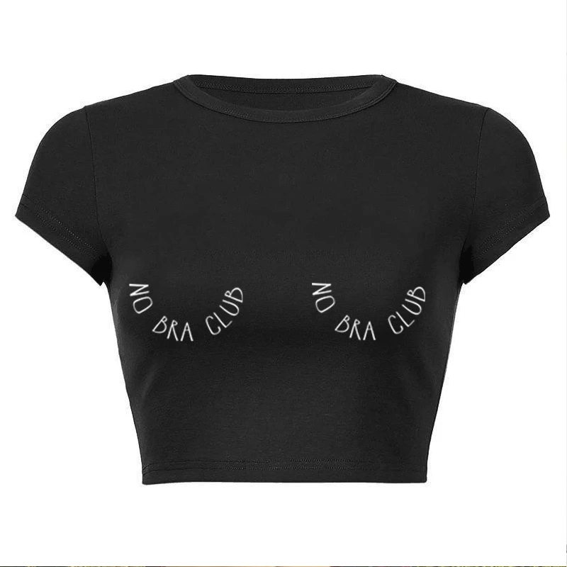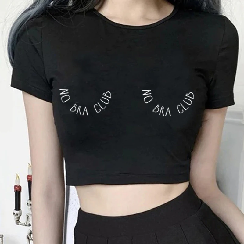 No Bra Club Casual Crop Tops Y2k Aesthetic T-Shirt Kawaii Graphic Summer Tops Fairy Grunge Baby Tee Women Clothes Streetwear