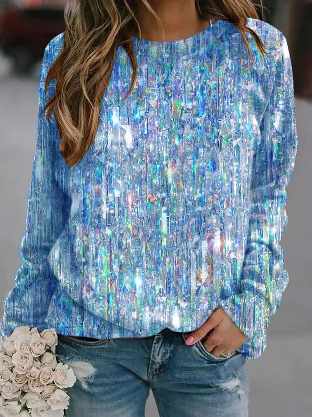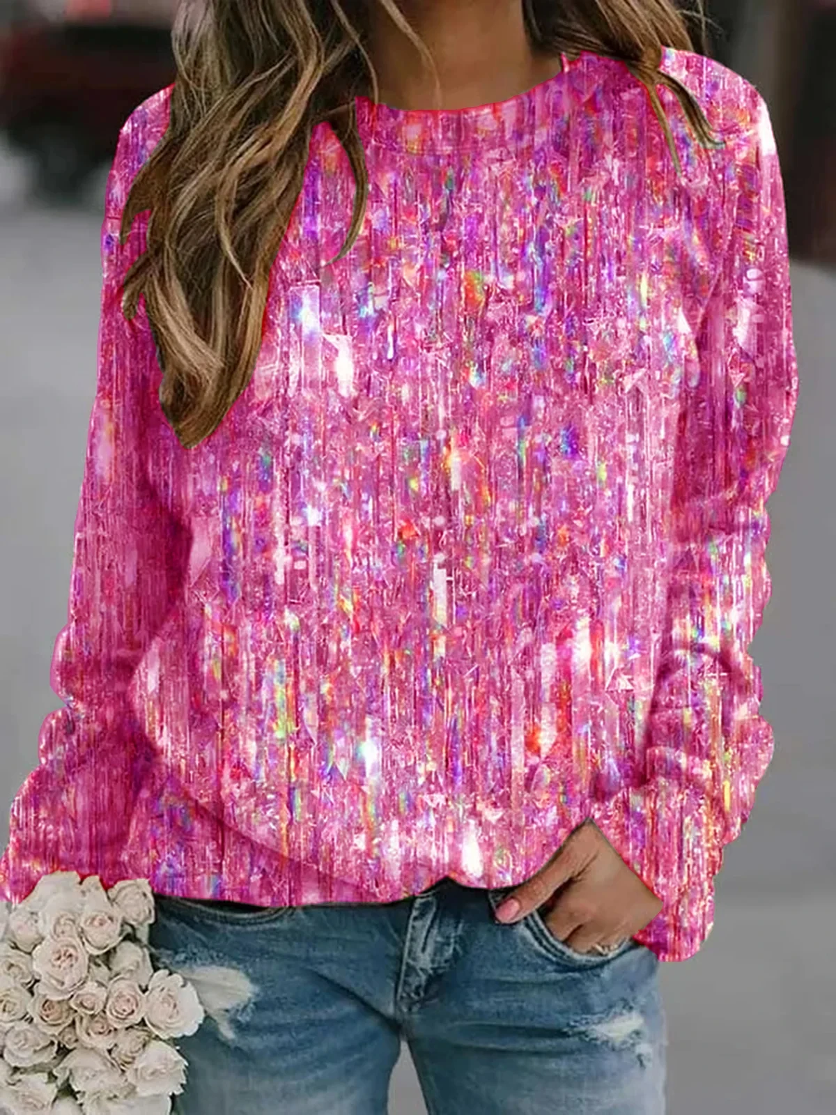 Women's Long Sleeve Sequin Sweatshirt Casual Round Neck Shiny Top Out Party Pullover Casual Ladies Long Sleeve T-Shirt