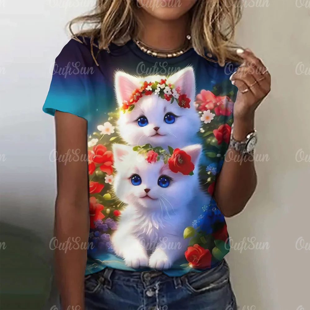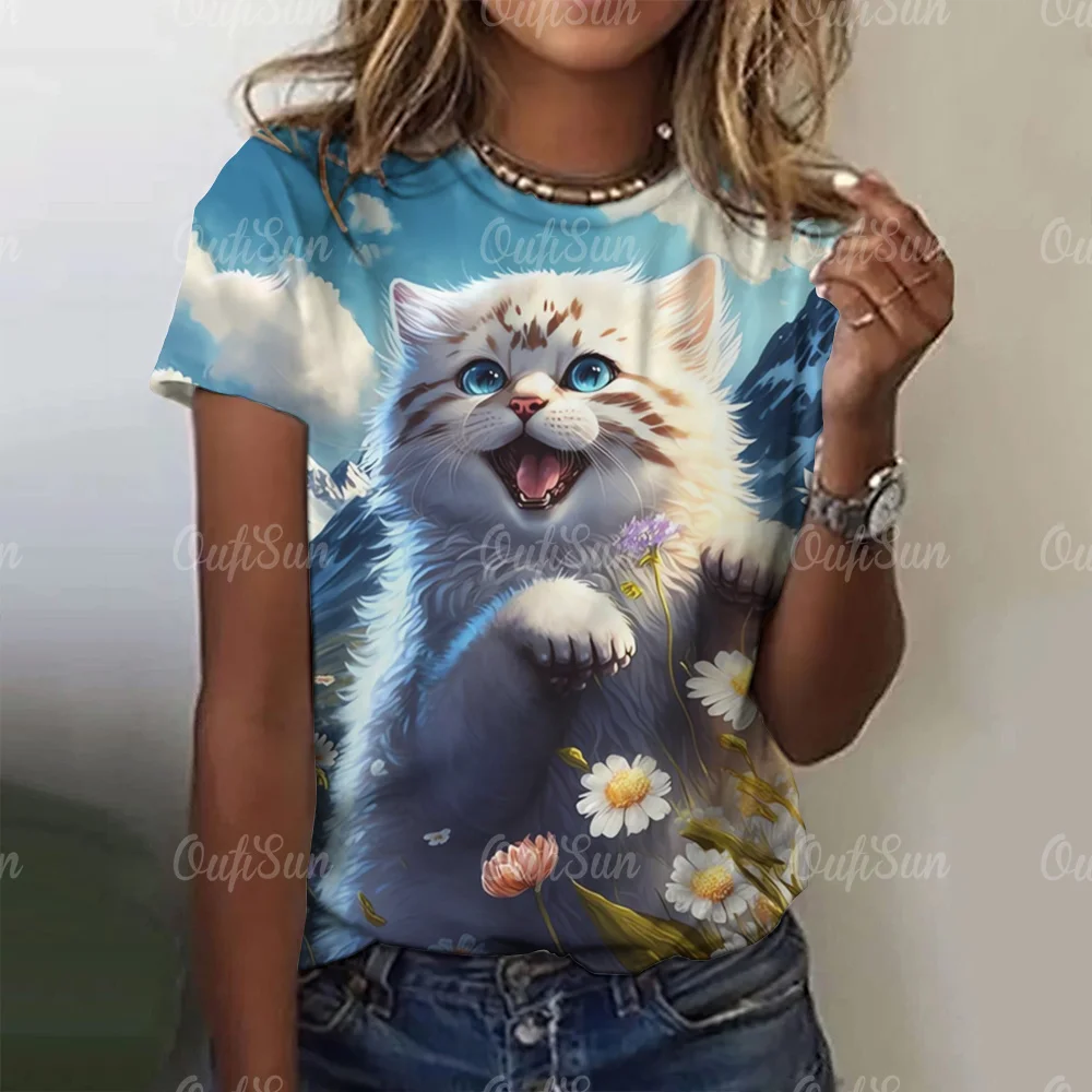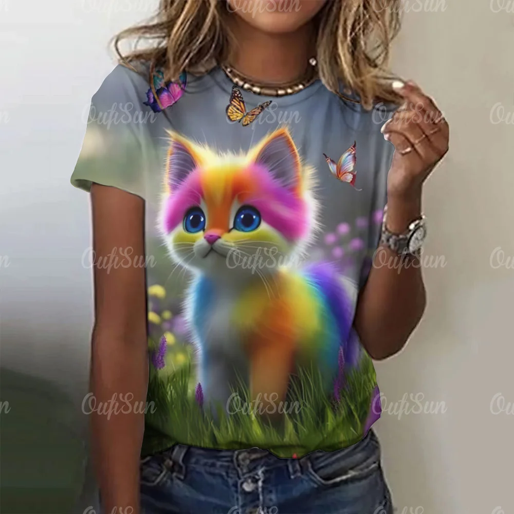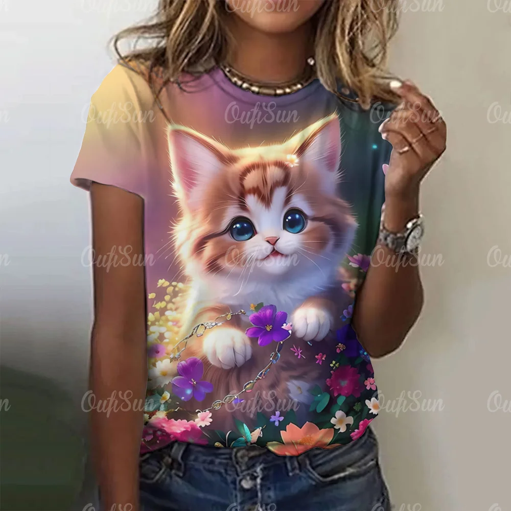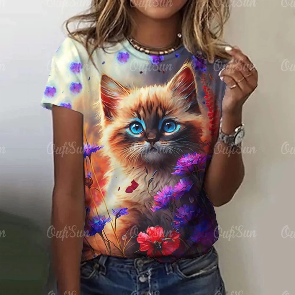Summer Fashion Women's T-Shirts 3d Cute Cat Print Harajuku T-Shirt Short Sleeve Casual Kawaii Girls Tee Oversized Woman Clothing