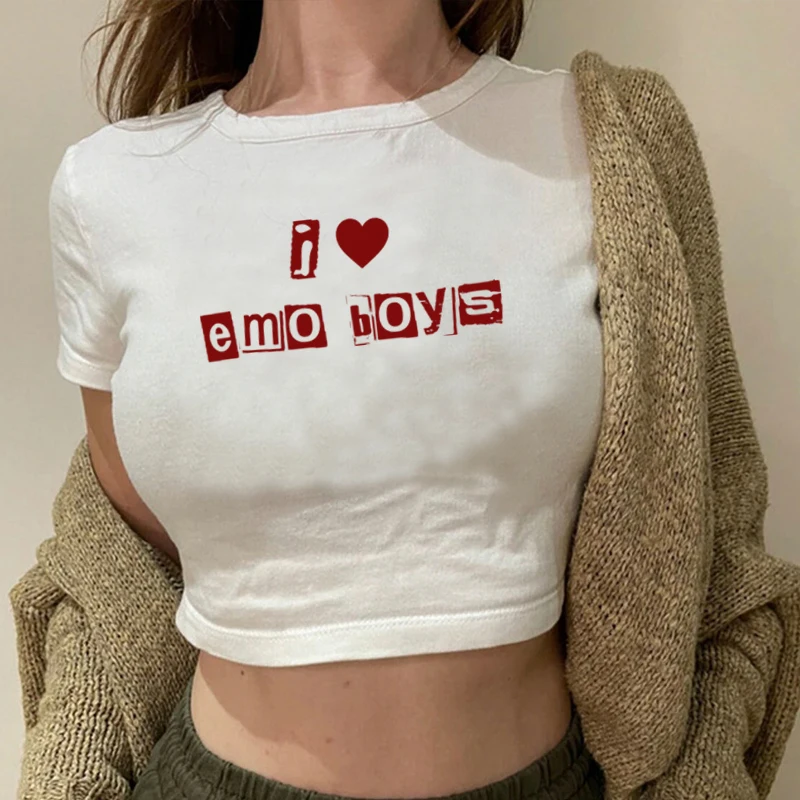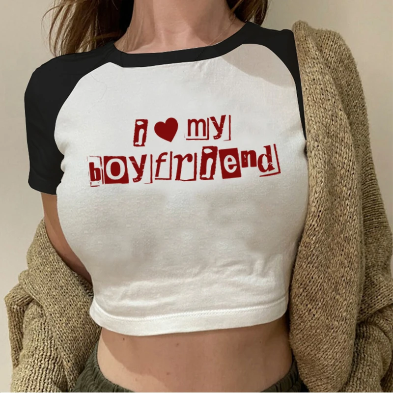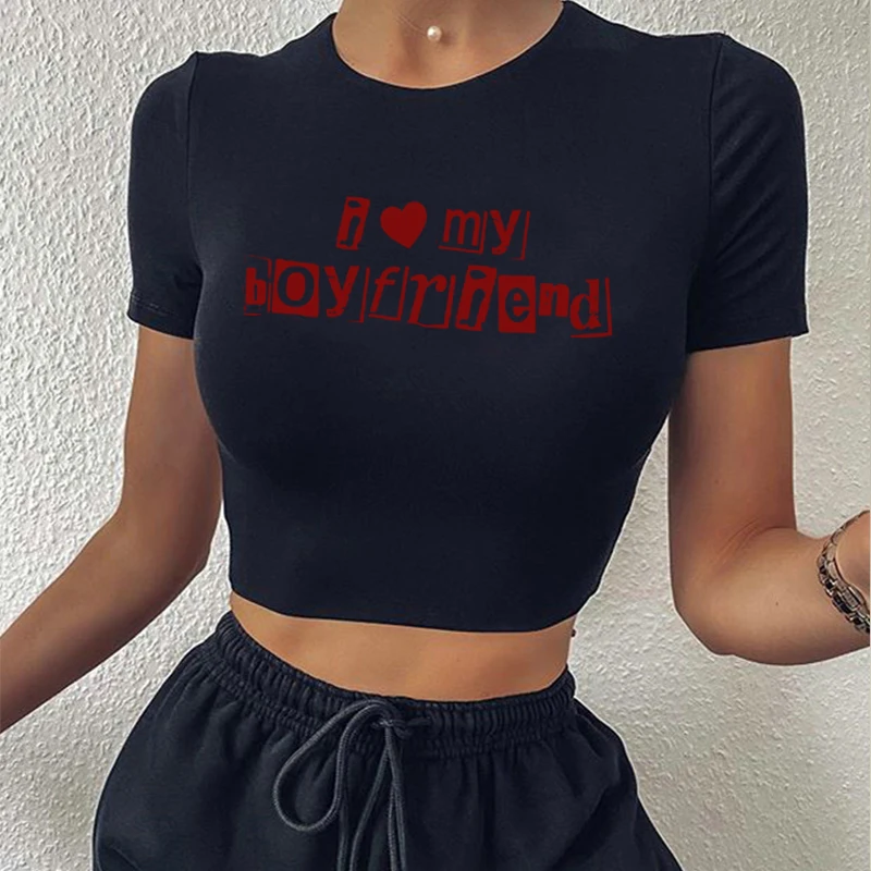 I Love My Boyfriend Crop Tops Teen Girl Y2k Graphic Women T-Shirt Summer Sexy Baby Tee 2000s Aesthetic Printed Tee Streetwear