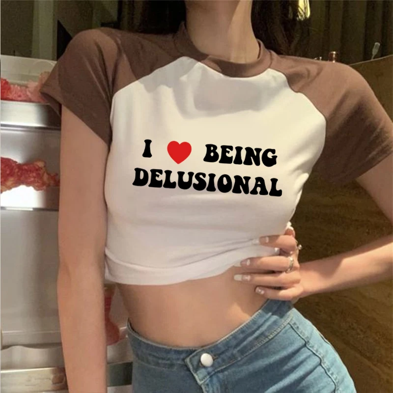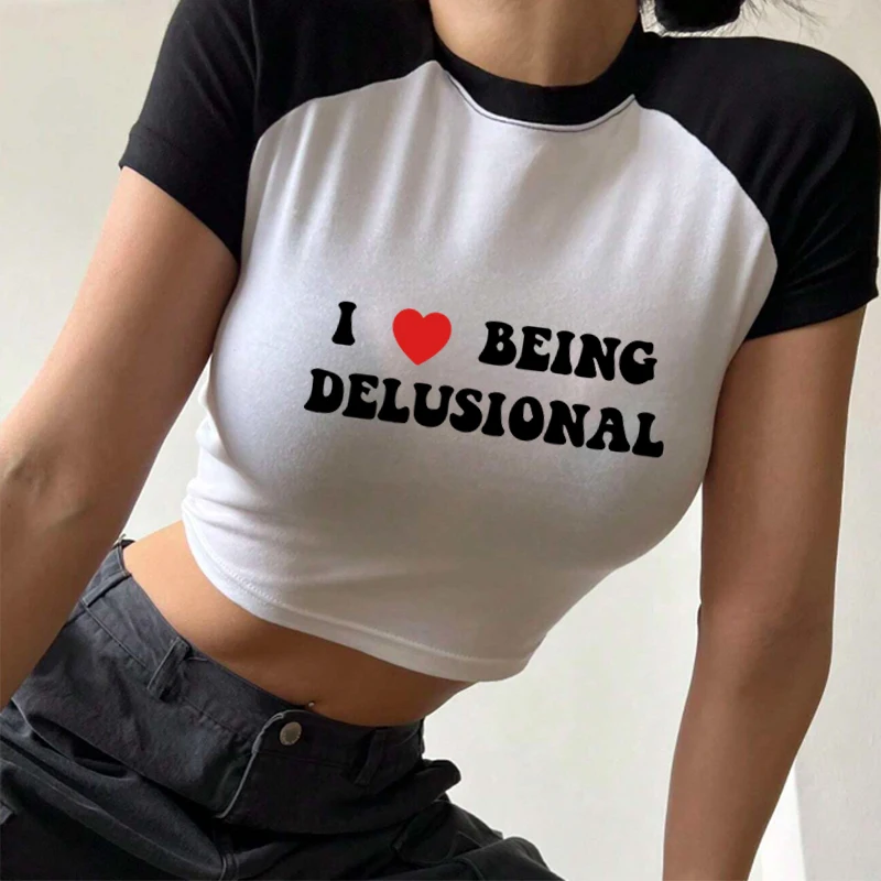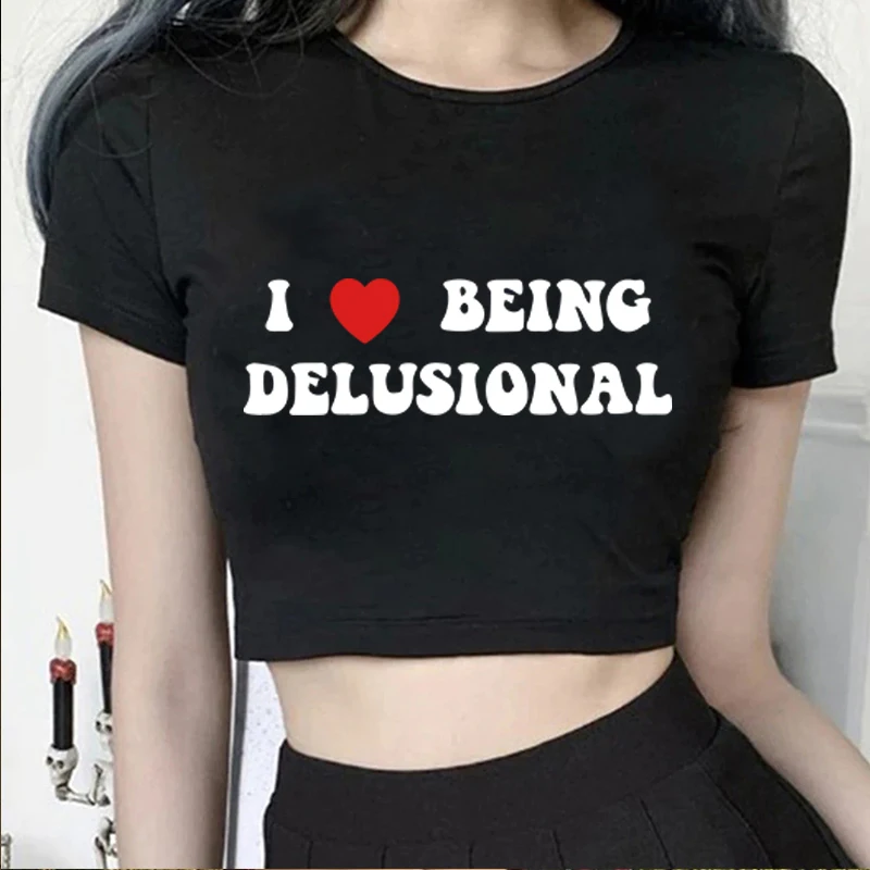 I Love Being Delusional,Y 2k Funny Quote I Heart Being Delusiona T-Shirt Trendy Quotes T-Shirt