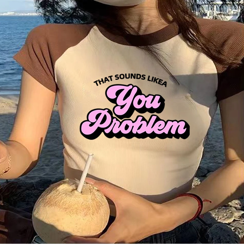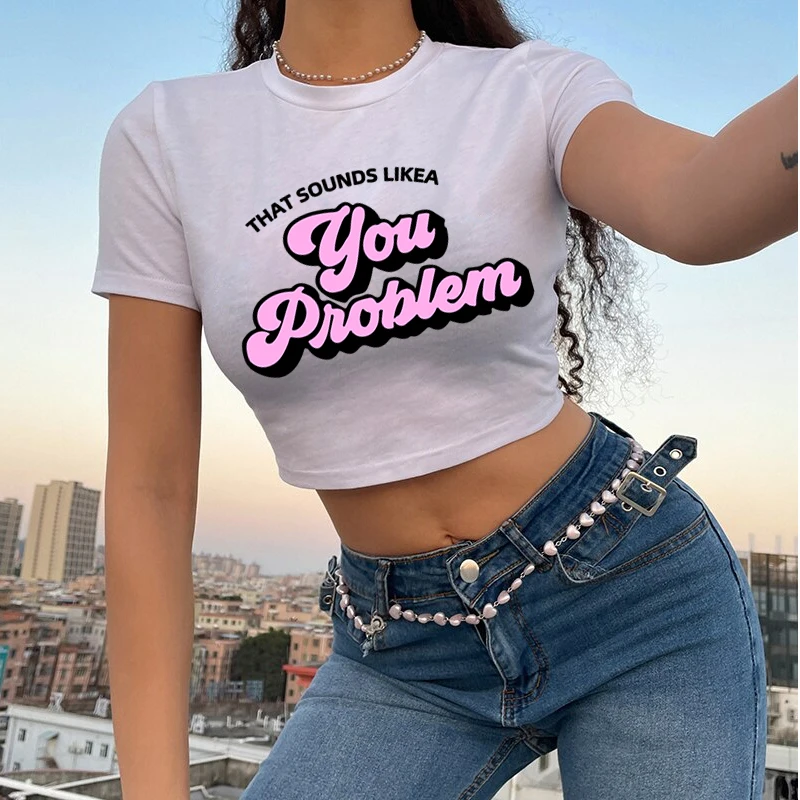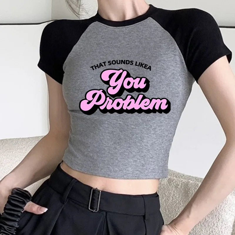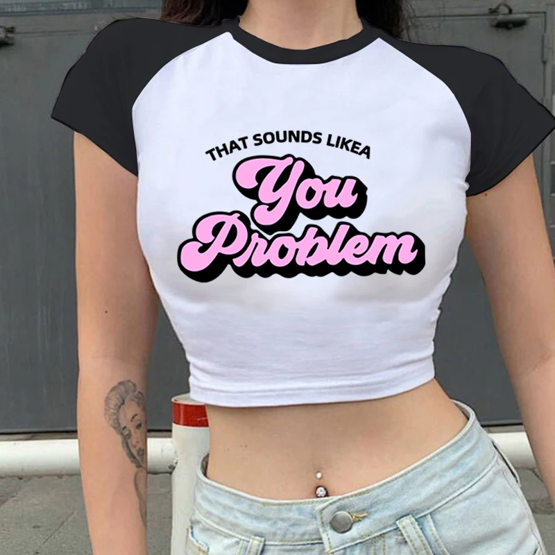 You Problem Y 2k Baby Tee ,That Sounds like a You Problem X Not My Problem Neinsagen Tee Retro Fashion O-Neck Tee Women Crops