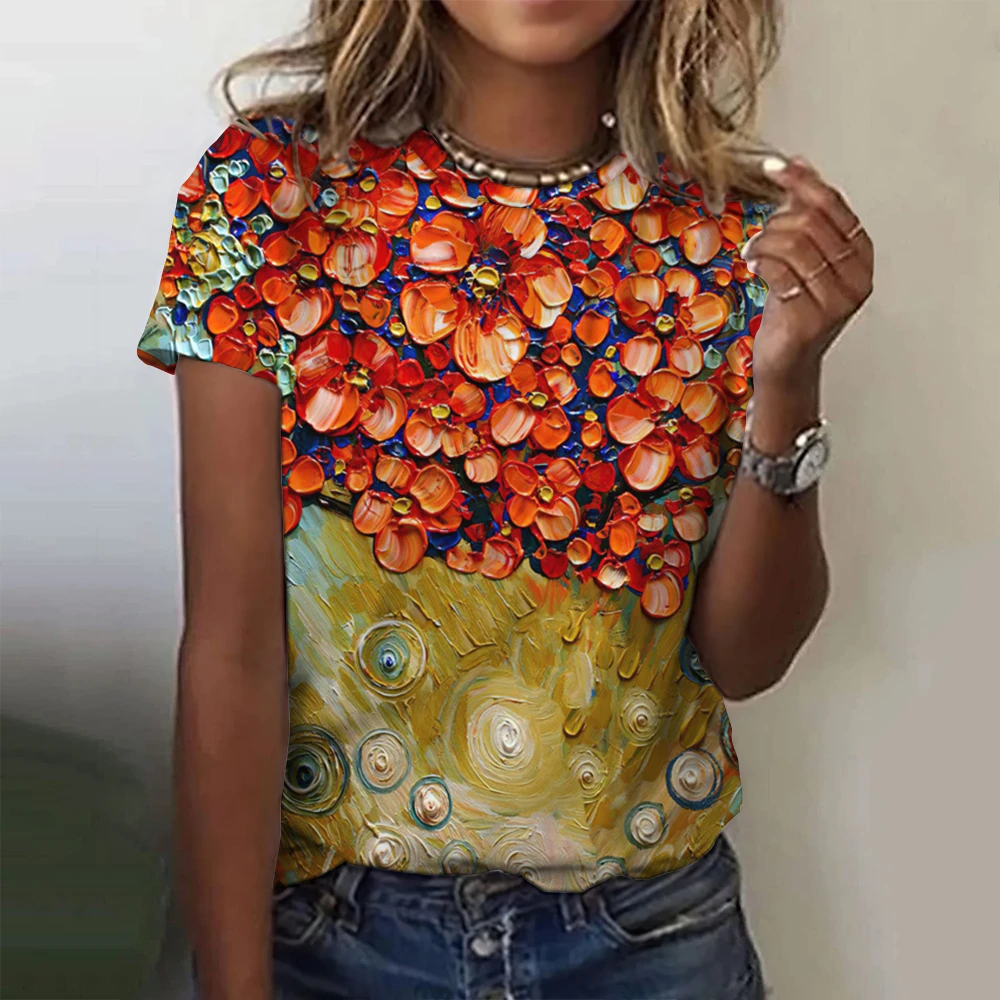 Women's T-Shirts Fashion T Shirt Floral Print T-Shirt For Women Shirt Summer Basic Female Top Print Large Sizes Women's Clothing