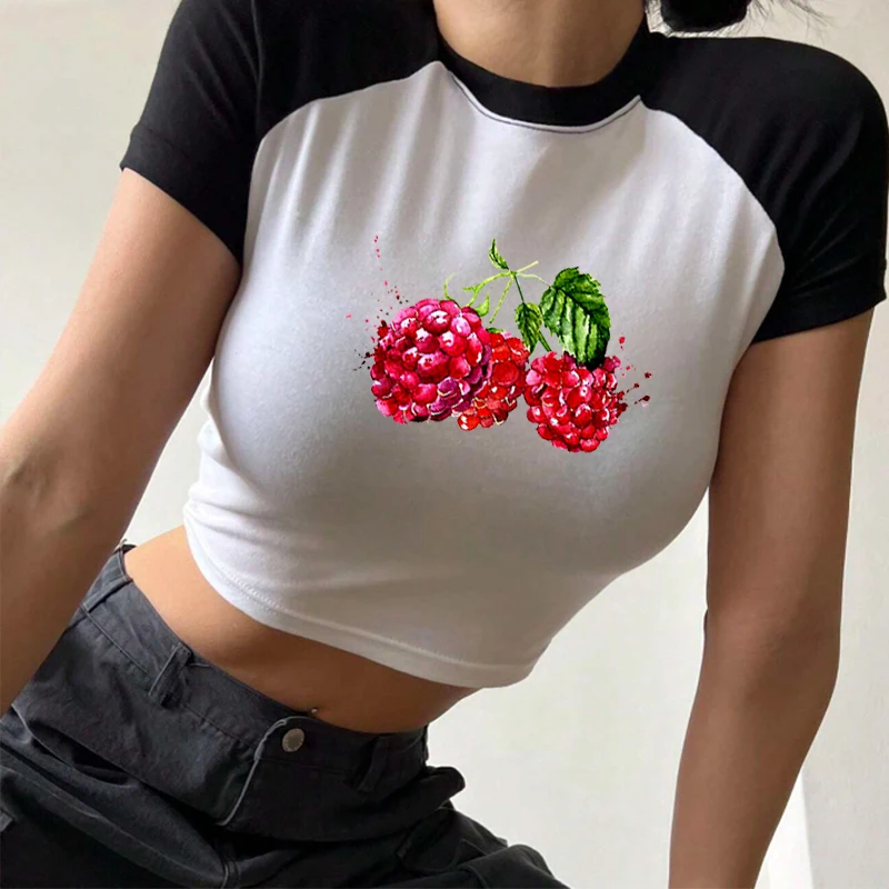 Y 2k Women's Printed Sleeve T-Shirt Women's Short Shirt Tops Vest Women's Sleeve O-Neck Women's Casual T-Shirt