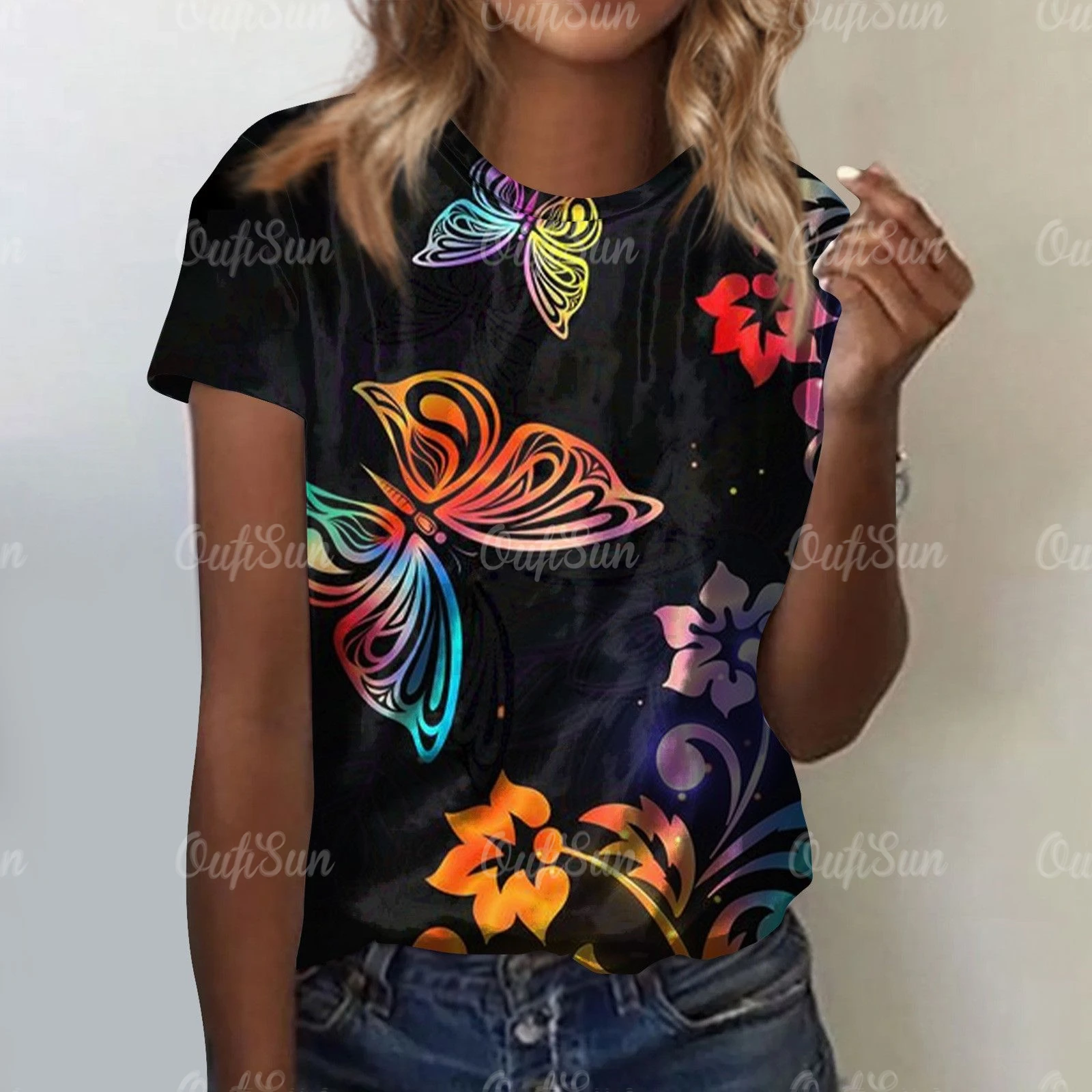 Butterfly Print Women T-Shirts Fashion Tee For Ladies Shirt Summer Basic Casual Female Top Print Large Sizes Women's Clothing