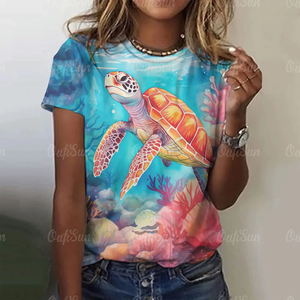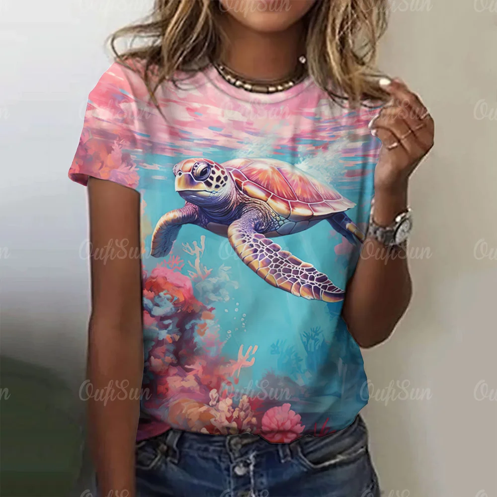 Summer Women T-Shirts Short Sleeved Turtle Print T Shirts Fashion Women's T-Shirts Oversized Love Graphic Top Female Clothing