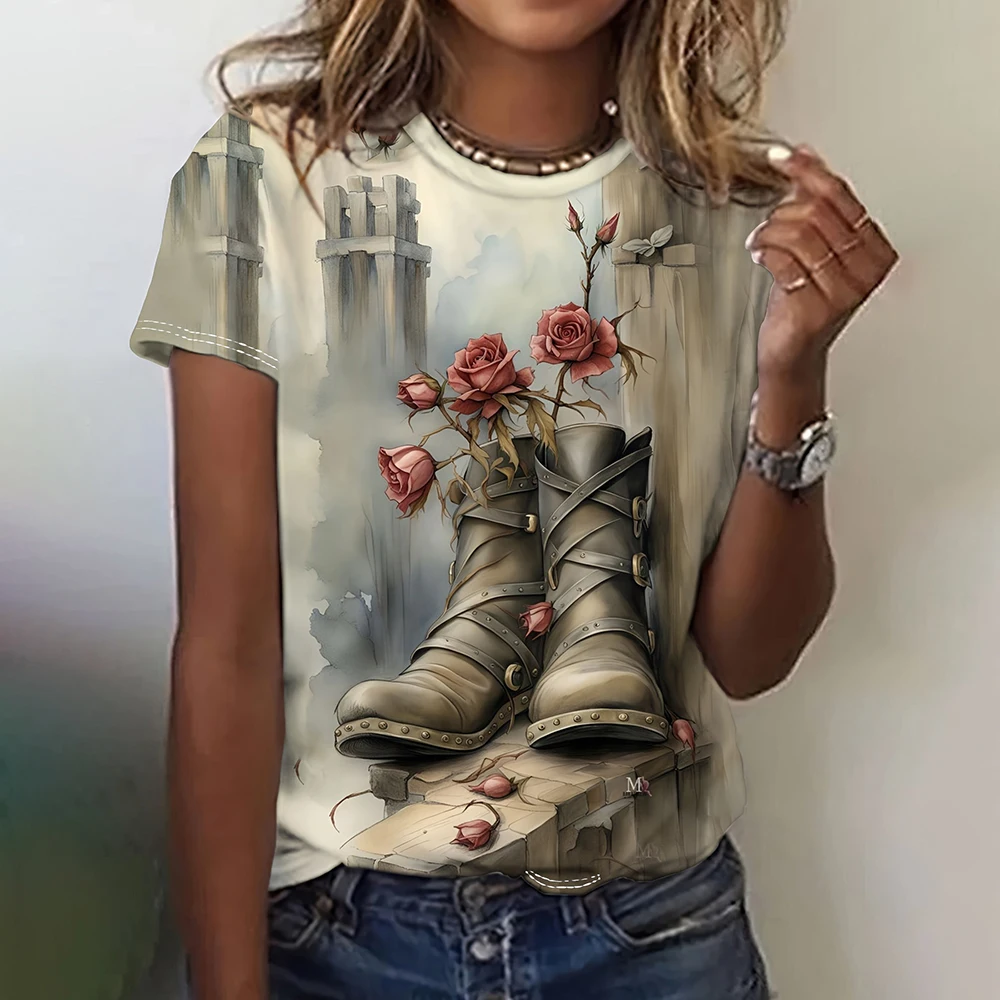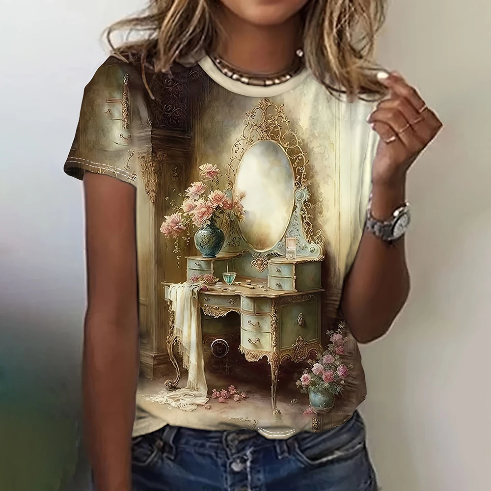 Summer Women T-Shirts Short Sleeved Art Vintage Print T Shirts Fashion Women's T-Shirts Oversized Retro Top Female Clothing