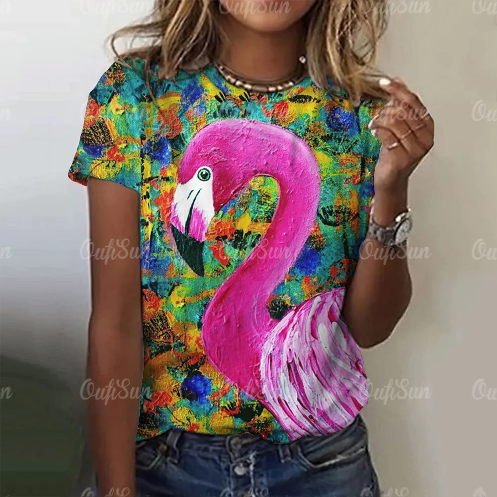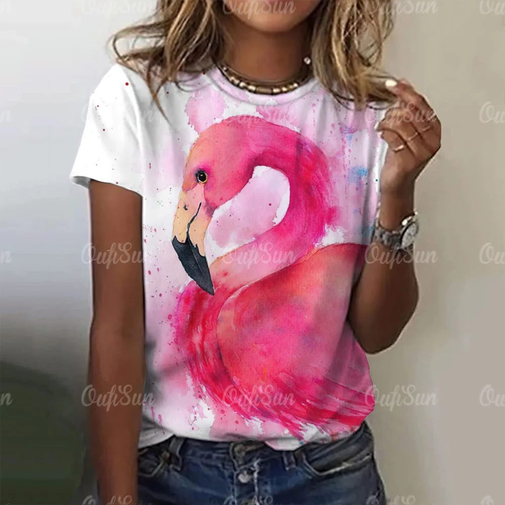 Fashion Women T-Shirts 3d Flamingo Print Casual Tops Ladies Casual Female T Shirts Harajuku Girls Short Sleeve Oversized Clothes