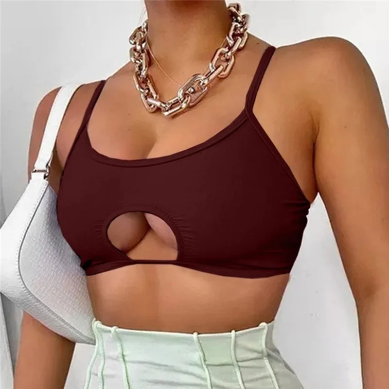 Women Sexy Hollowing Design Vest Ladies Solid Color Hollow Sleeveless Square Collar Crop Top Fashion Female Vest