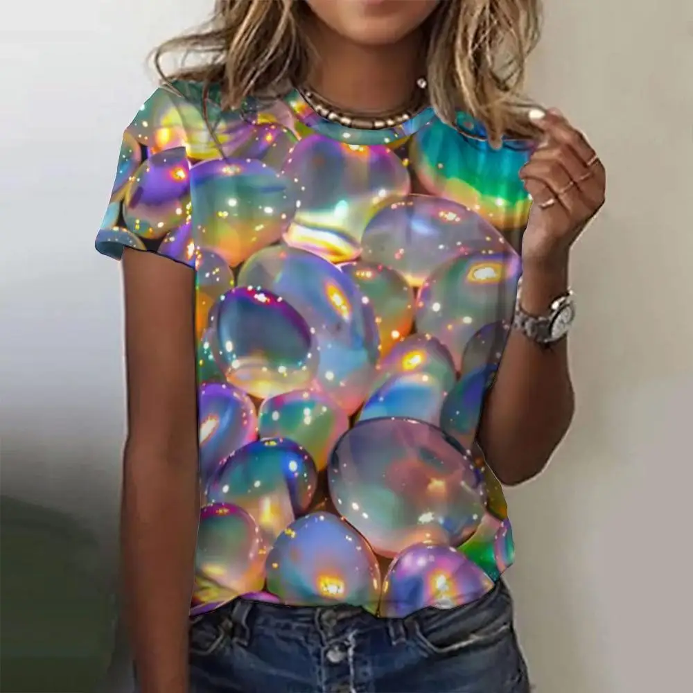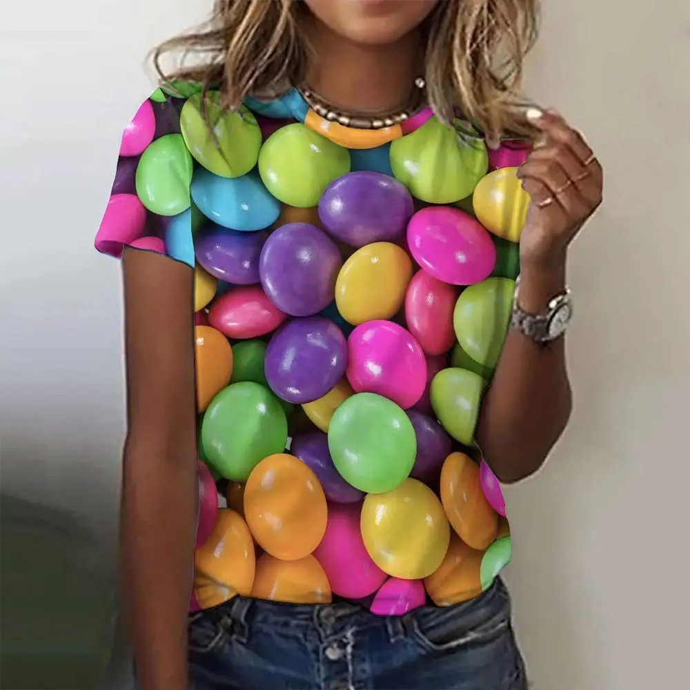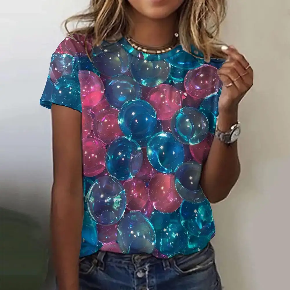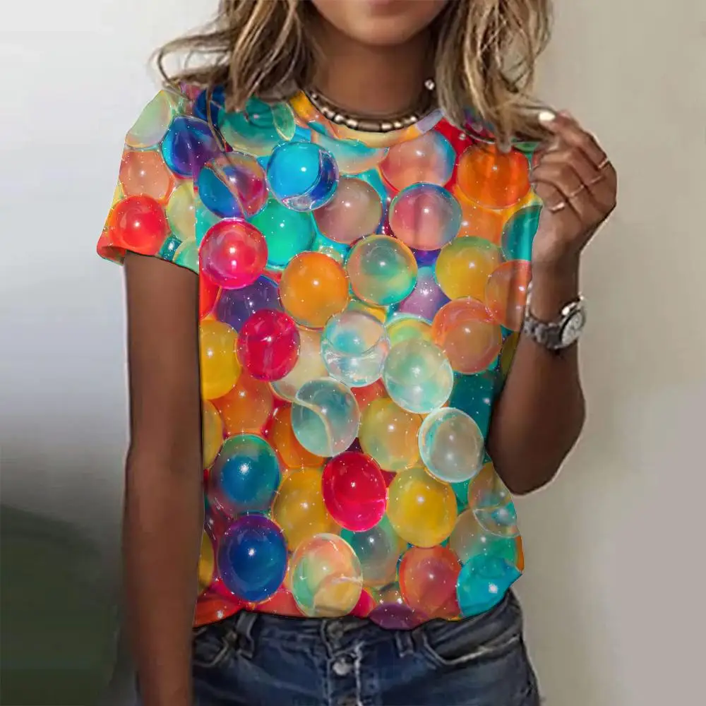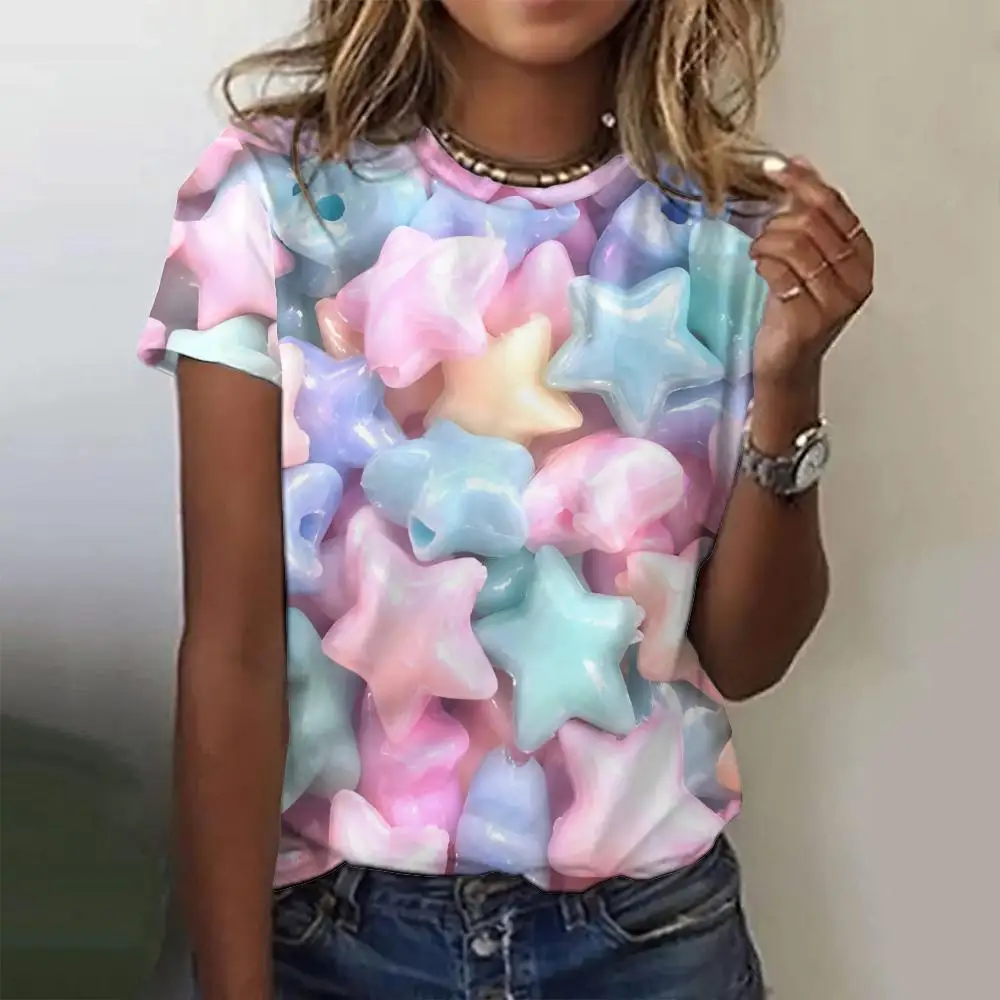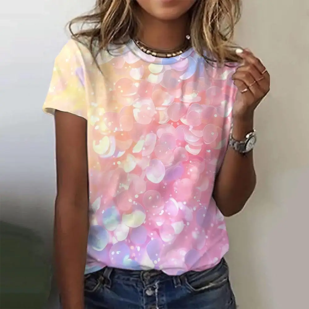 Summer Women's Casual Street Casual Loose Round Neck Short Sleeve Women's T-Shirt Fashion Printed Color Pattern T-Shirt