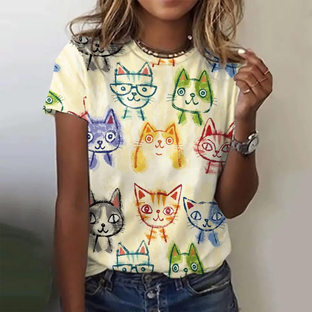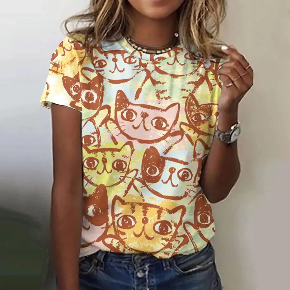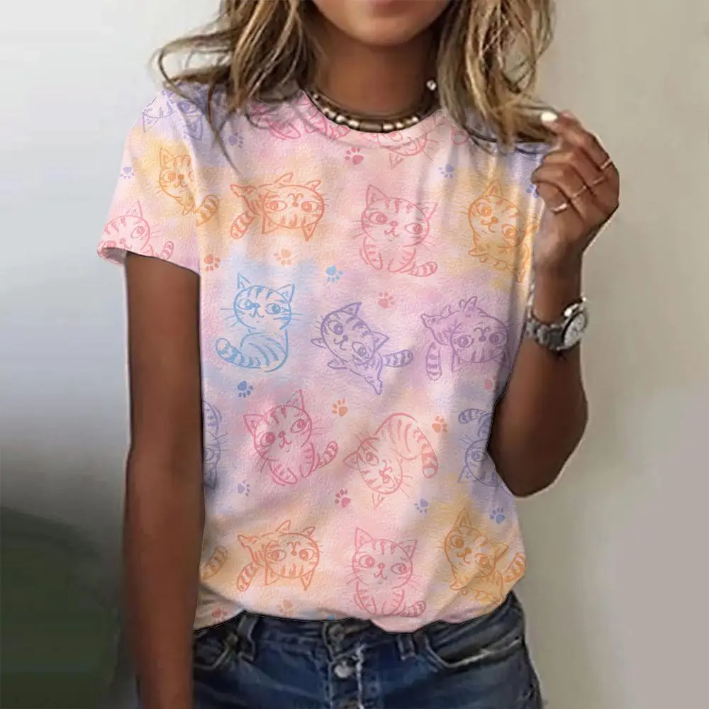 Summer Round Neck Women's T-Shirt Street Fashion Comfortable Loose Top 3d Printed Color Oversized Short Sleeve T-Shirt