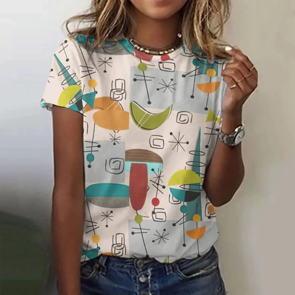 Summer Minimalist Casual Women's T-Shirt Comfortable And Loose Round Neck Short Sleeve T-Shirt Fashionable 3d Printed Top