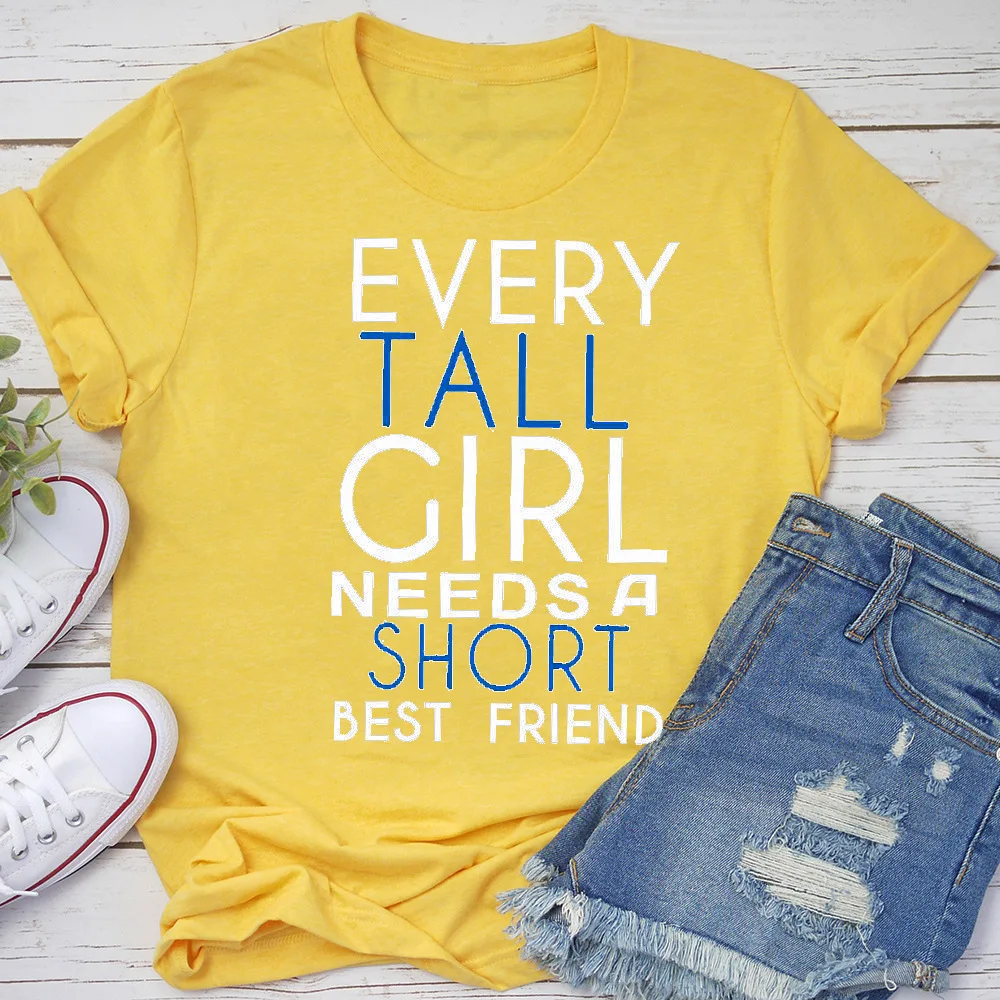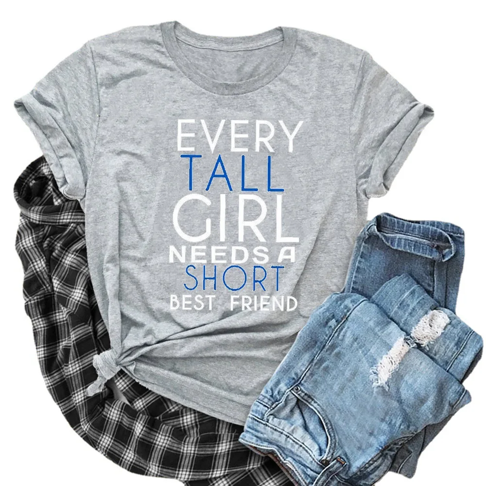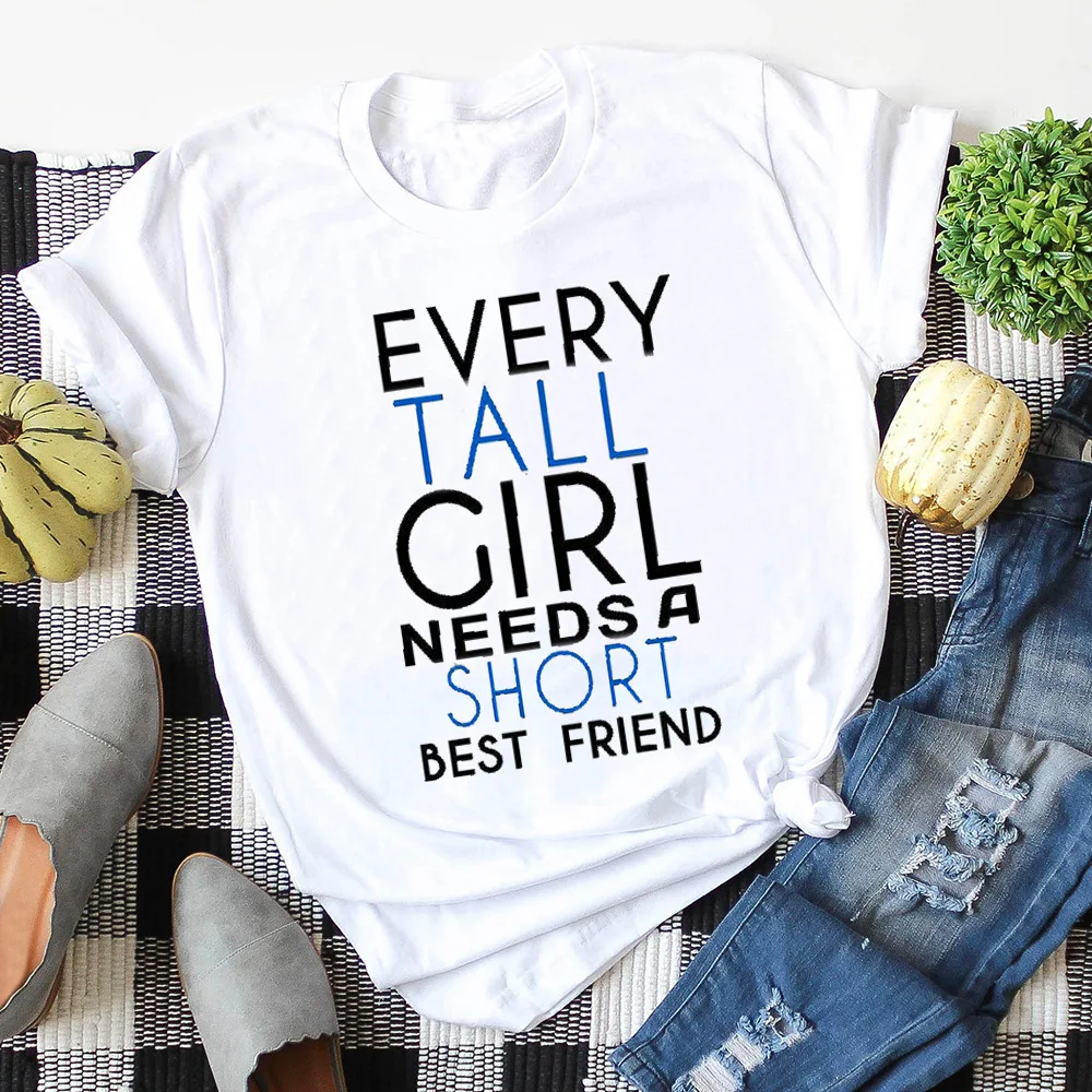 Tall Girl Need Short Friend Print Women T Shirt Short Sleeve O Neck Loose Women Tshirt Ladies Tee Shirt Tops Camisetas Mujer
